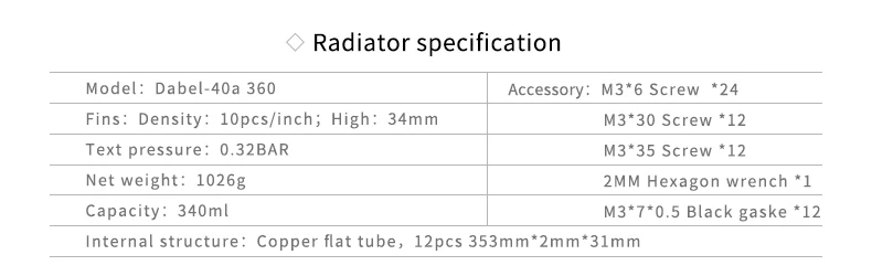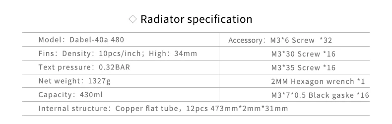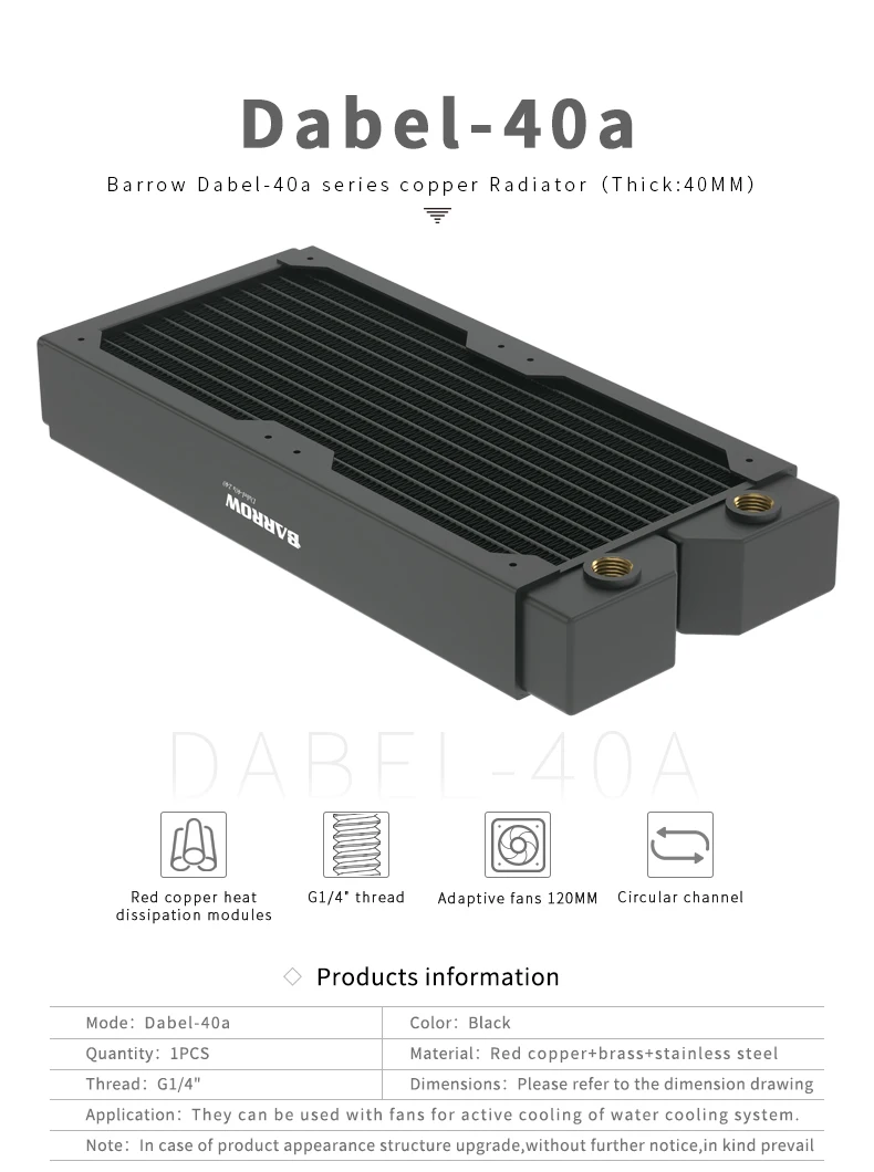 Radiador de cobre Barrow 120 240 360 480MM disipador de calor rosca G1/4, 40mm de espesor, ventilador de 120mm para kit de refrigeración por agua, Dabel-40a de caja DIY