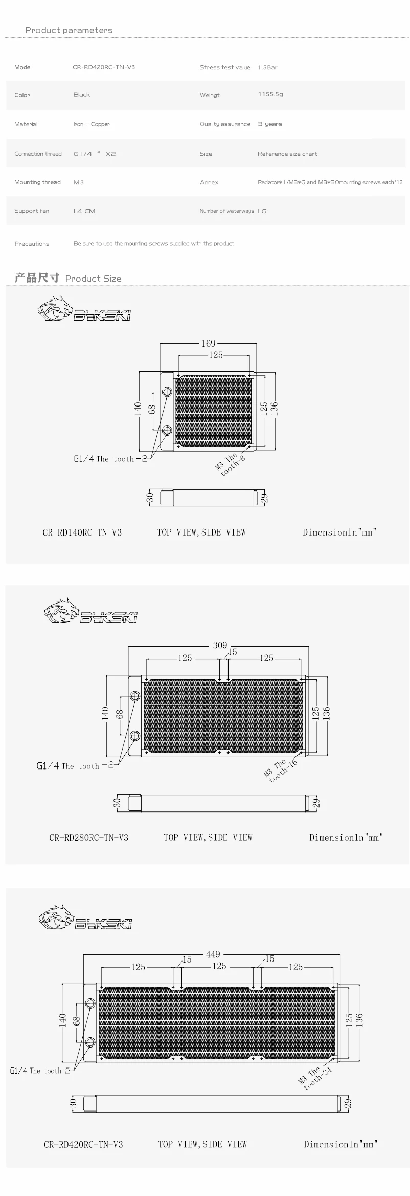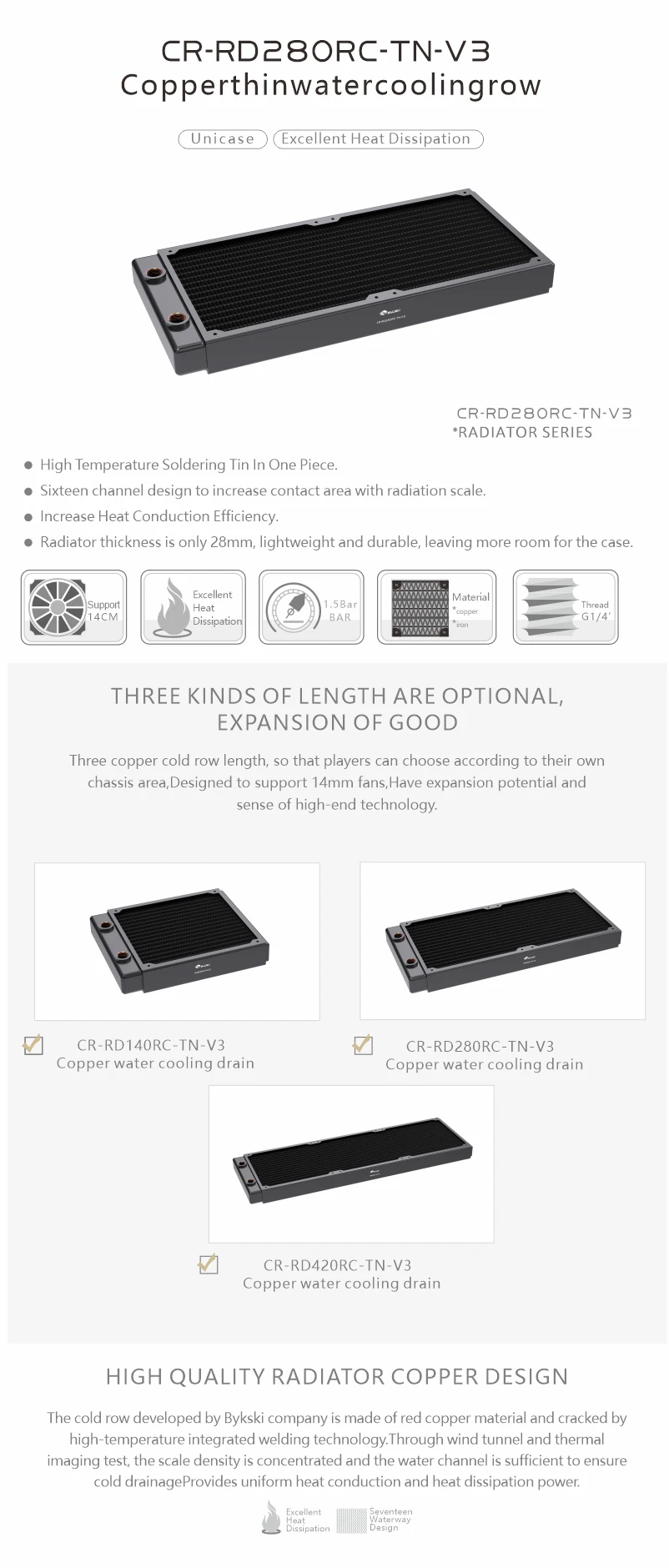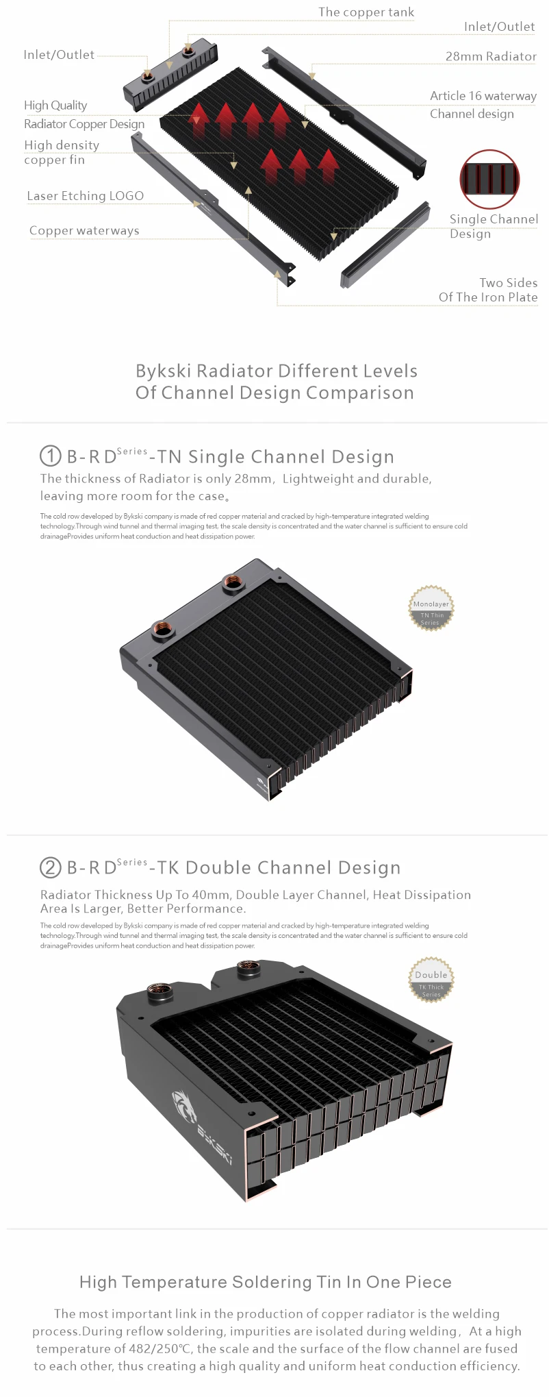 Comprar Radiador de cobre lleno de 30mm de espesor Bykski, soporte de fila de refrigeración por agua para PC delgada, ventilador de 14CM y 140MM, disipador de calor para ordenador de 140/280/420MM