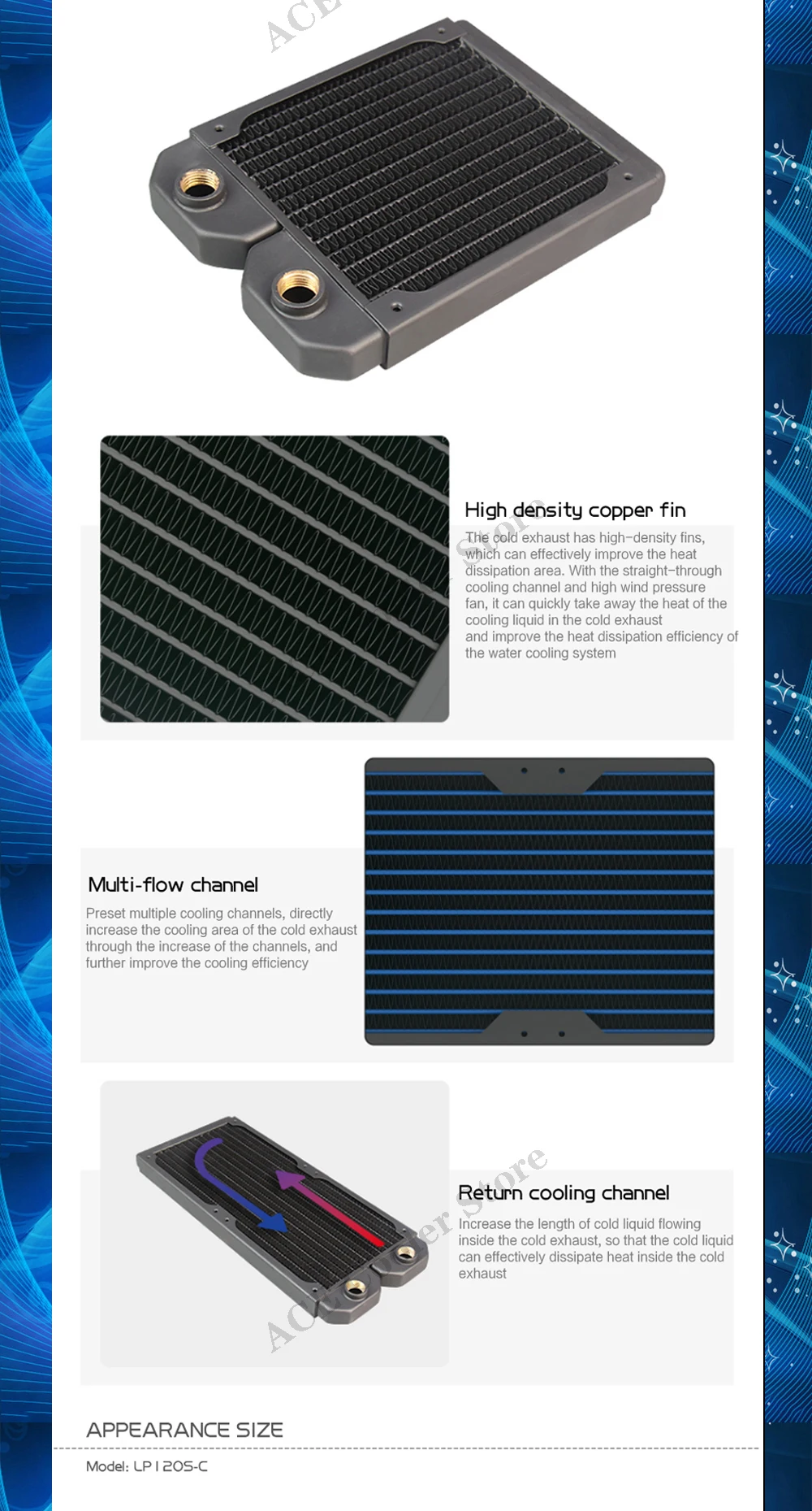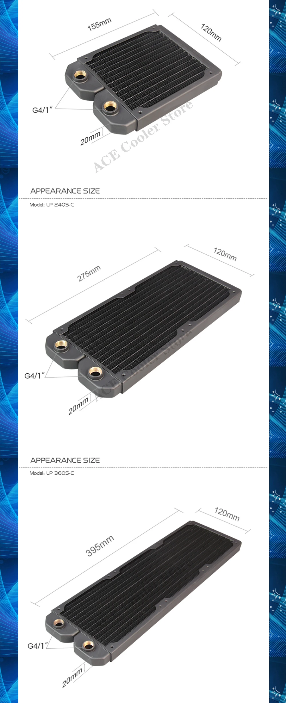 Comprar Radiador de cobre para PC, 20mm de espesor, G1/4 ", refrigeración por agua para ordenador, disipador térmico, 120mm, 240mm, 360mm, 480mm, negro/blanco