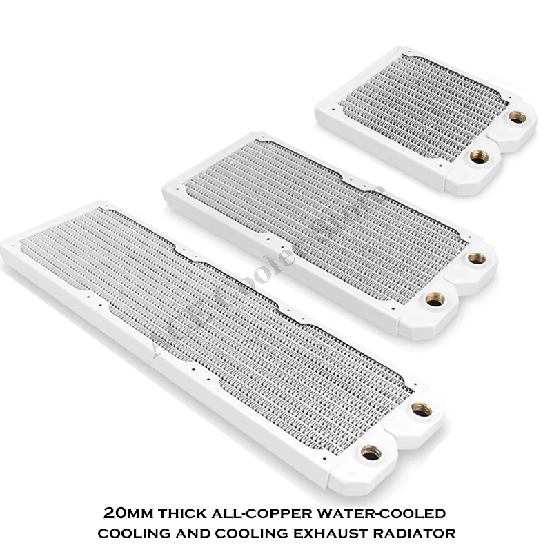 Radiador de cobre para PC, 20mm de espesor, G1/4 ", refrigeración por agua para ordenador, disipador térmico, 120mm, 240mm, 360mm, 480mm, negro/blanco