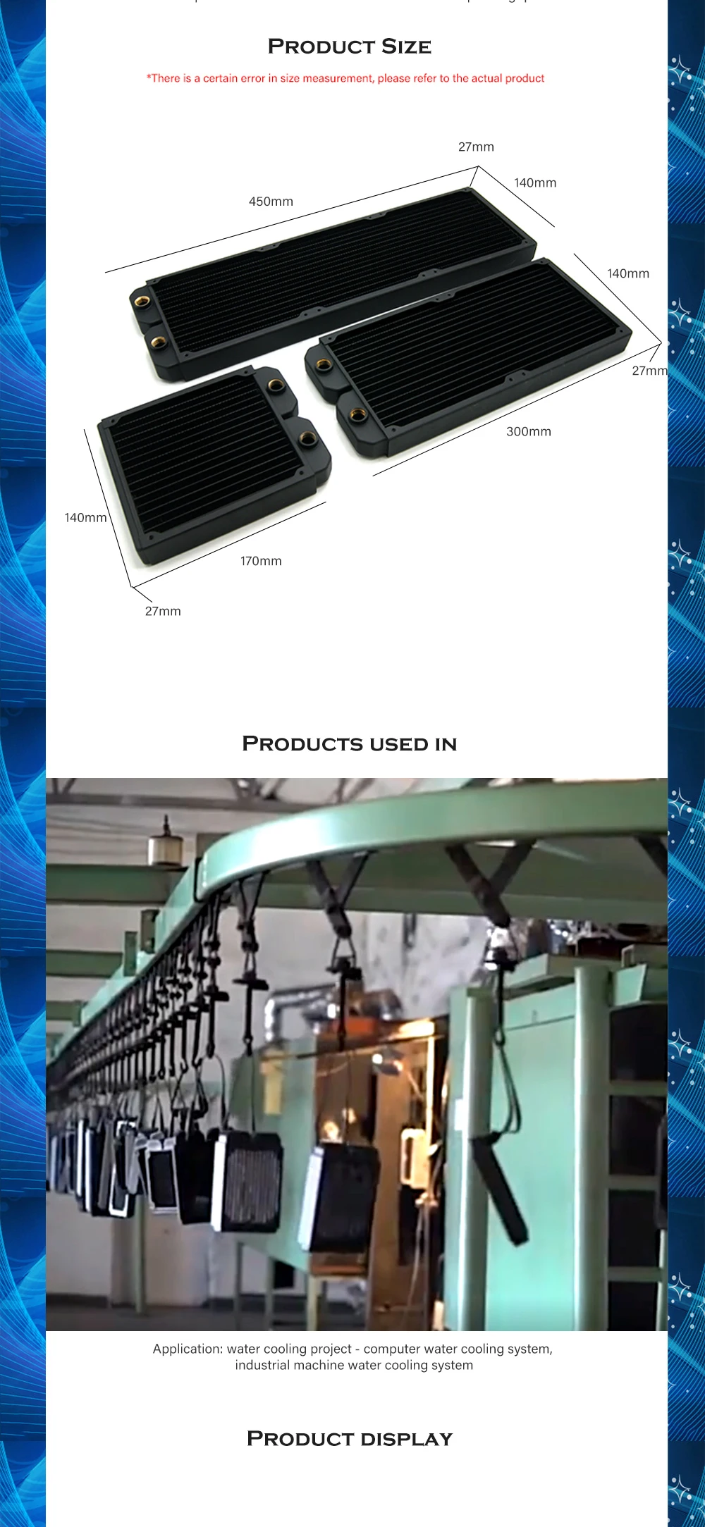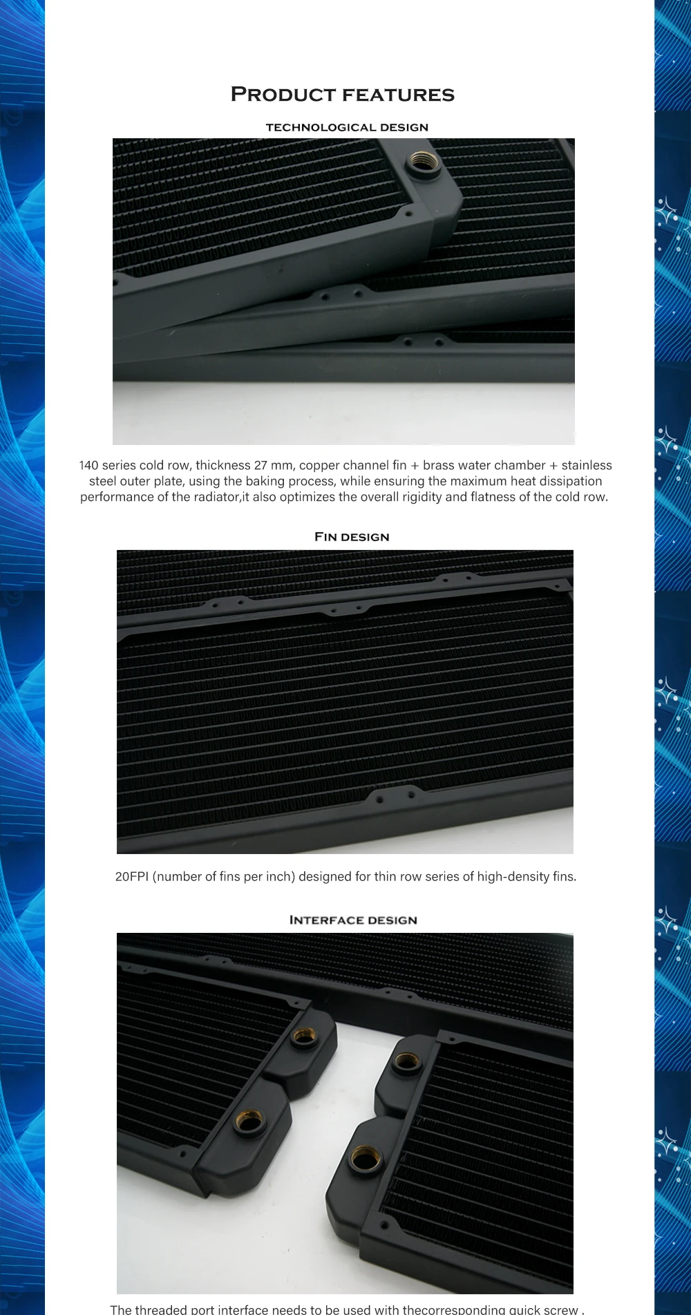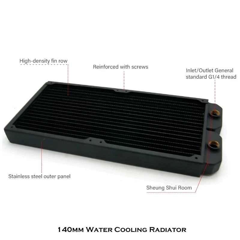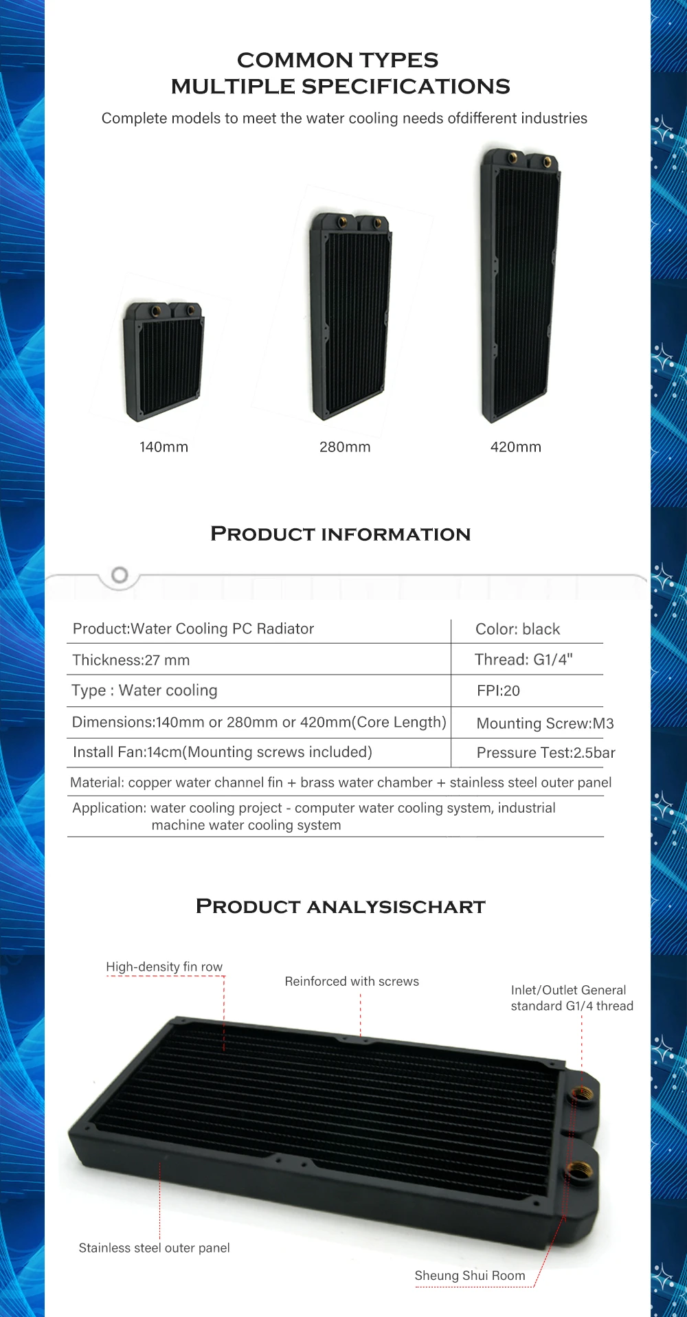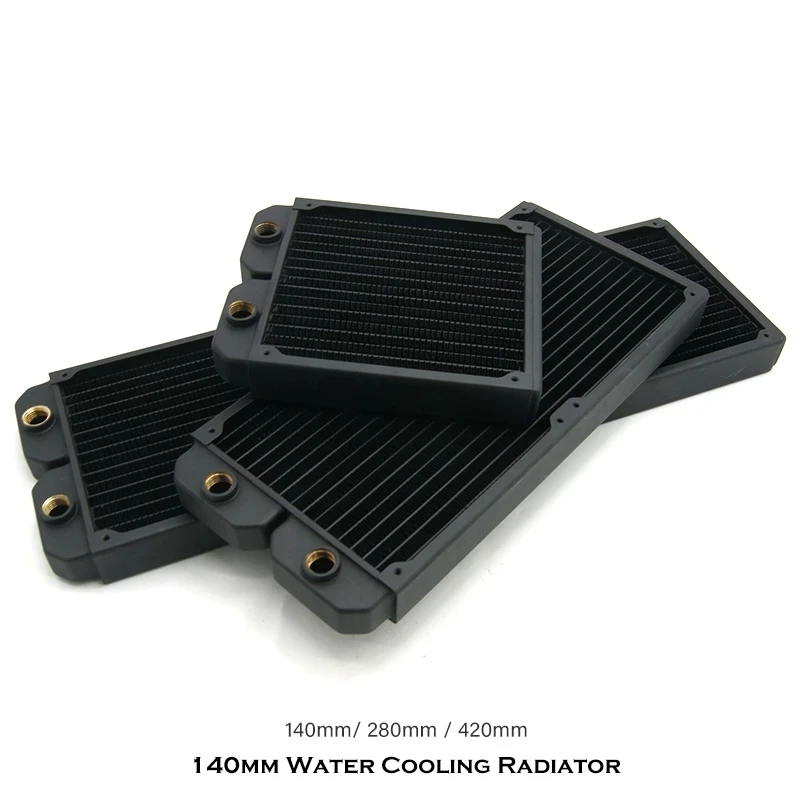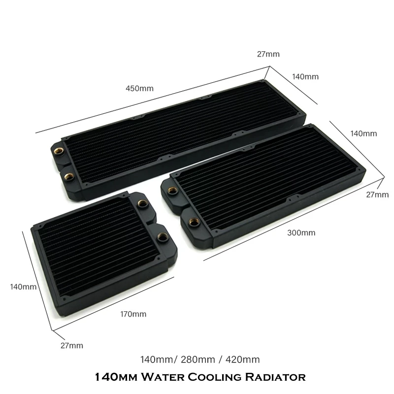 Radiador de cobre de refrigeración por agua para PC G1/4 pulgadas, enfriador de gabinete de computadora de 27mm de espesor Heatsiknk para ventilador de 14cm 140/280/420mm