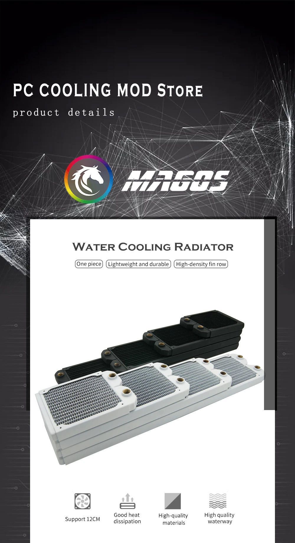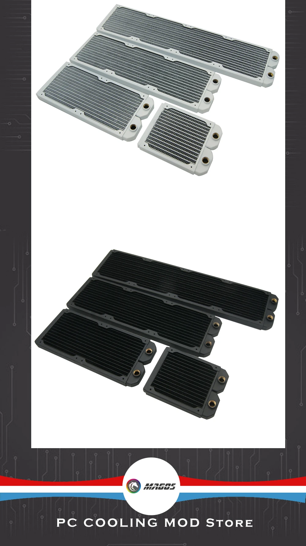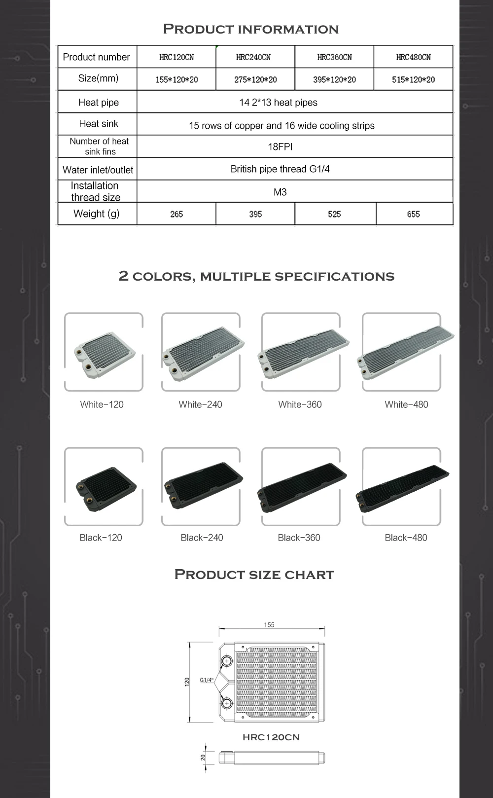 Radiador de refrigeración por agua fino de 20mm de espesor, Enfriador de disipador térmico de PC de cobre G1/4" para ventilador de 12cm 120mm 240mm 360mm 480mm negro/blanco
