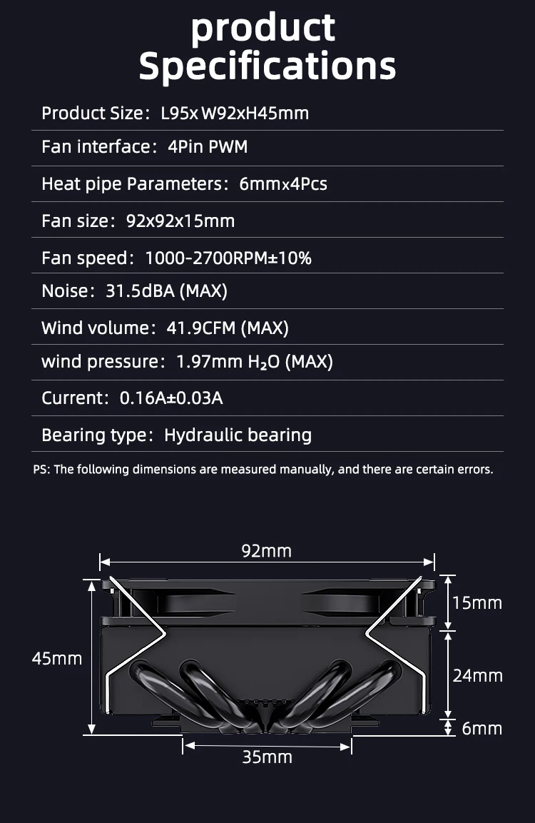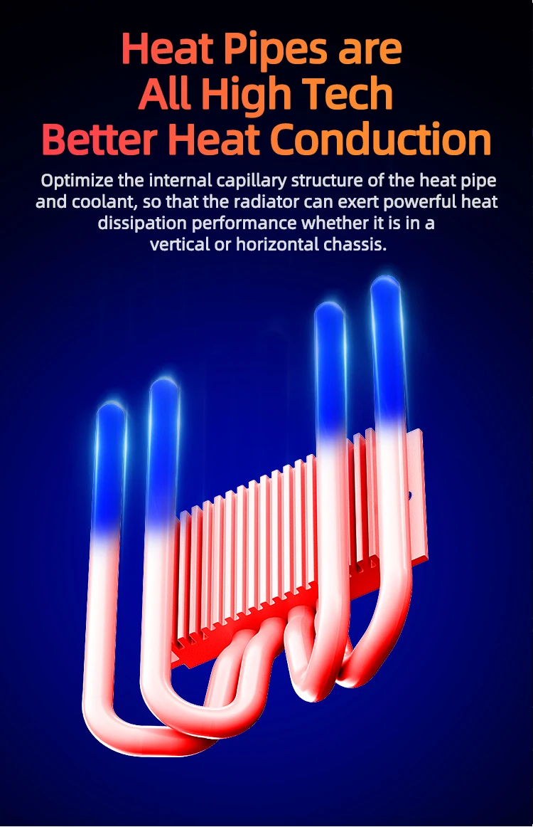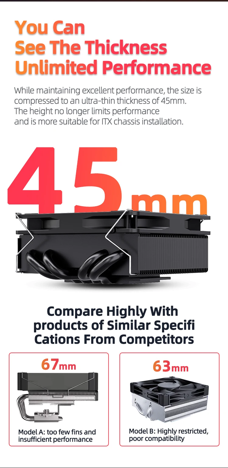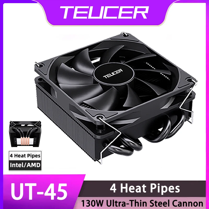 Comprar Radiador de CPU de perfil bajo TEUCER UT-45, 4 tubos de calor, ventilador de 4 pines para procesador de CPU Intel LGA 1700 1200 2011 2066 AM4 AM5 x99