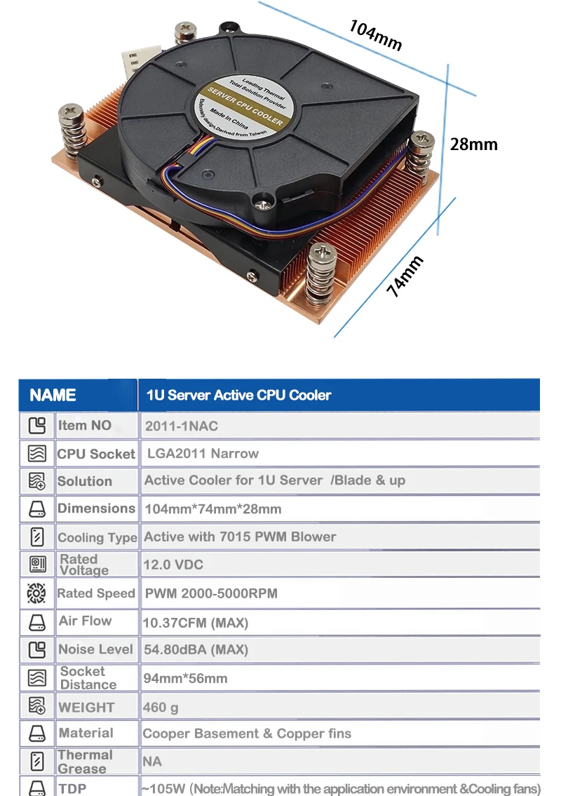 Comprar Radiador de disipador térmico de cpu, Enfriador de servidor Xeon E5 2600 E5 4600, LGA2011, estrecho, 94x56mm, venta de fábrica