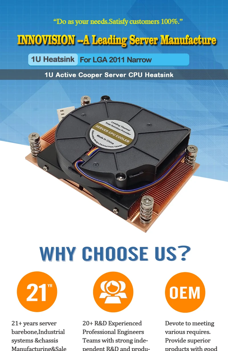 Venta de fábrica 1u LGA2011 estrecho 94*56mm servidor CPU enfriador Xeon E5 2600 E5 4600 serie CPU disipador radiador