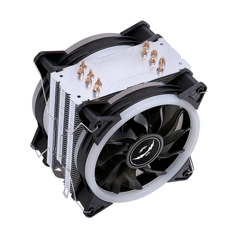 Base de aluminio puro combinada con 6 tubos de calor de cobre puro para una disipación de calor eficiente. Resuelva los problemas de altas temperaturas y haga que su ordenador sea más fluido. Ventilador súper silencioso. Los rodamientos hidráulicos reducen la resistencia a la fricción y reducen eficazmente el ruido. Diseño multiplataforma, fácil instalación.