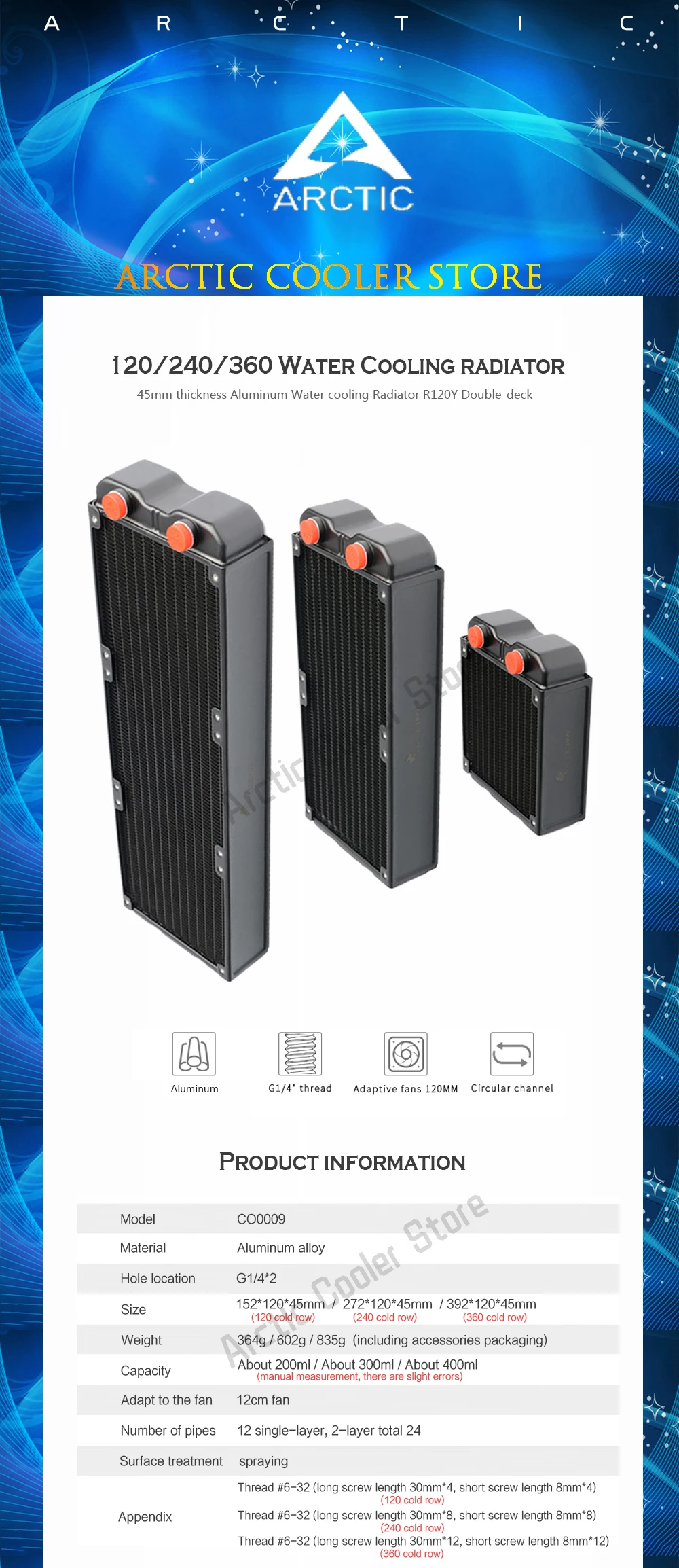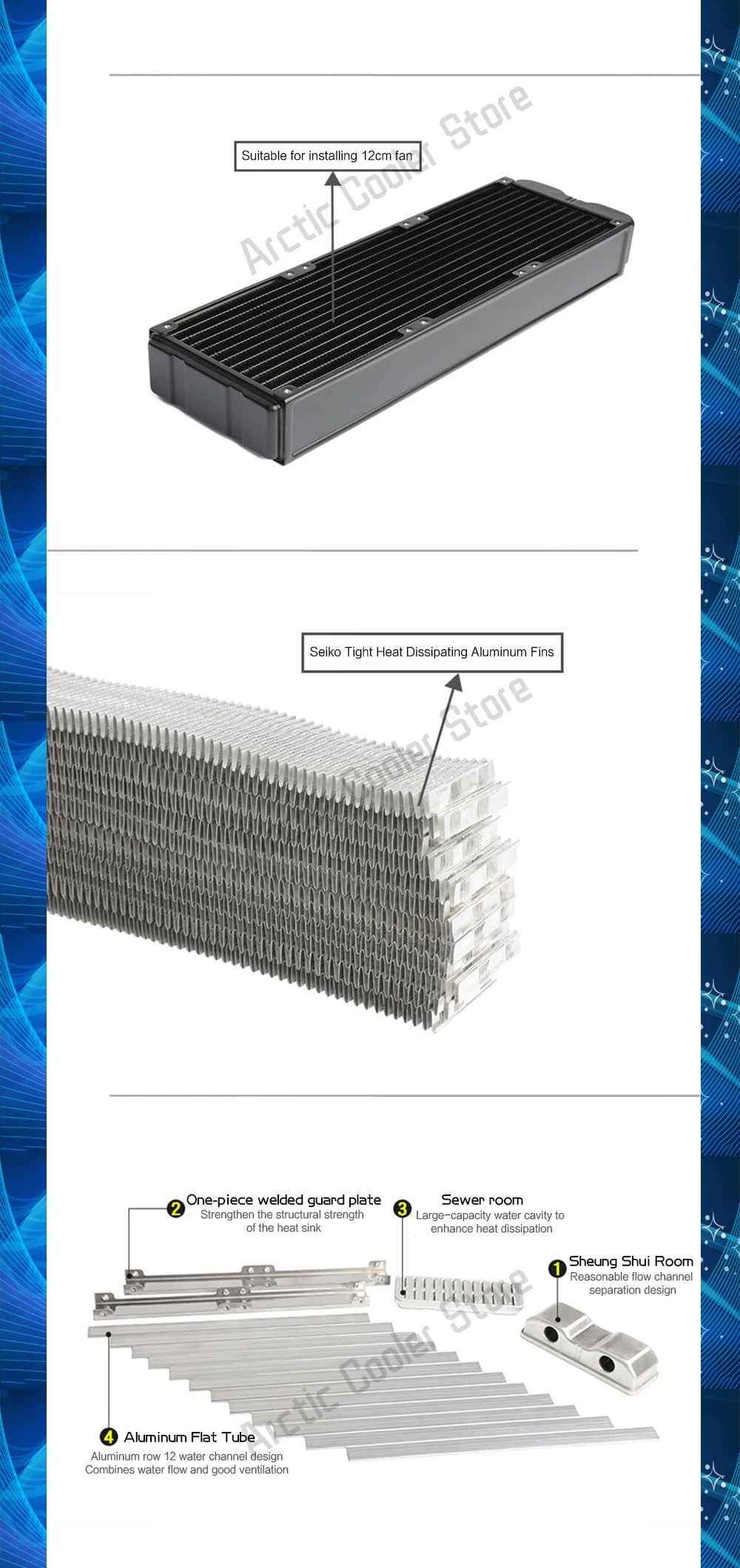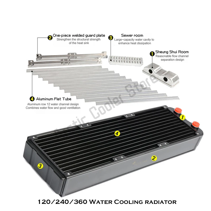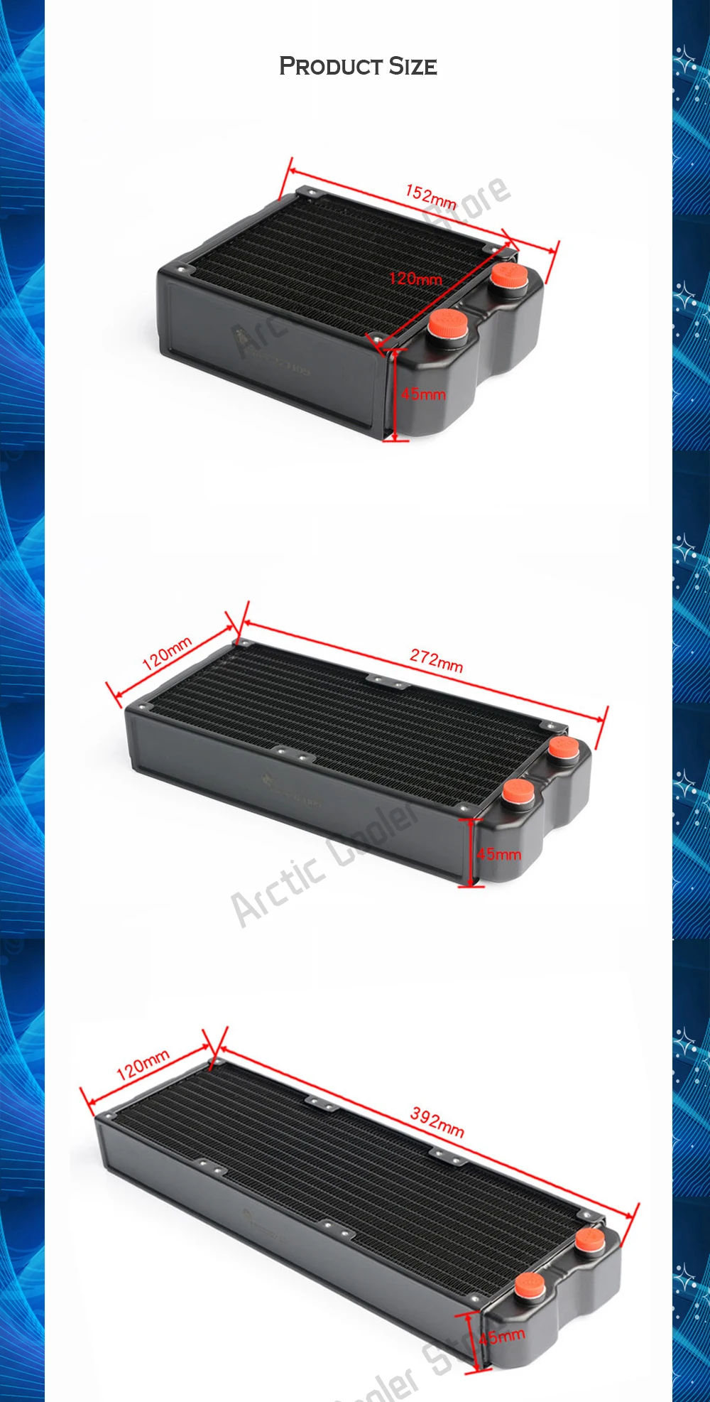 Comprar Radiador de PC de refrigeración por agua de aluminio G1/4 de 45mm de espesor, Enfriador de disipador térmico de CPU de computadora 120mm 240mm 360cm negro