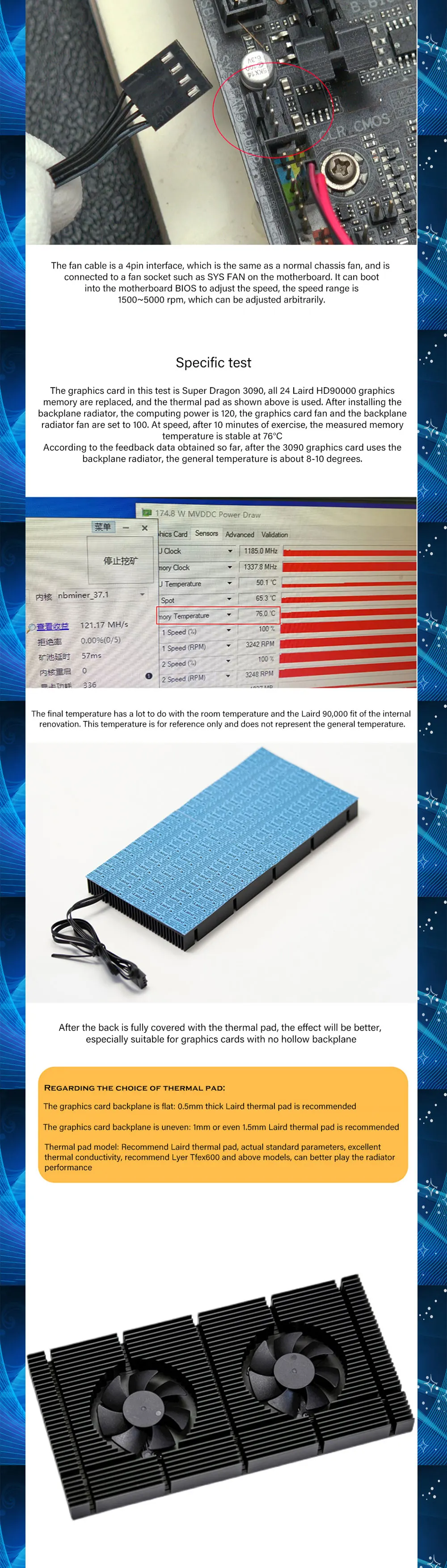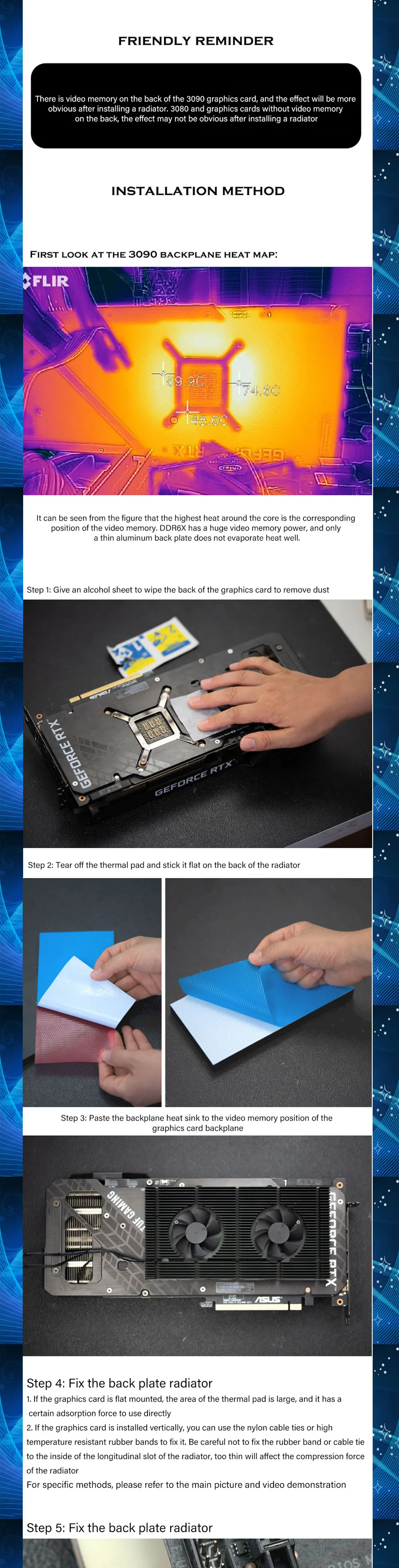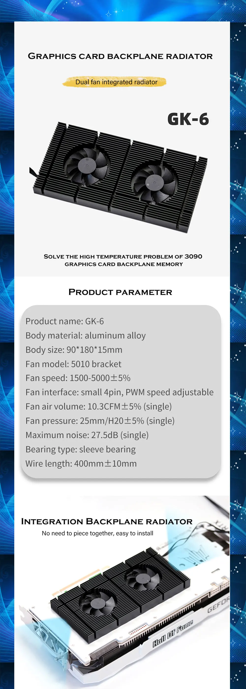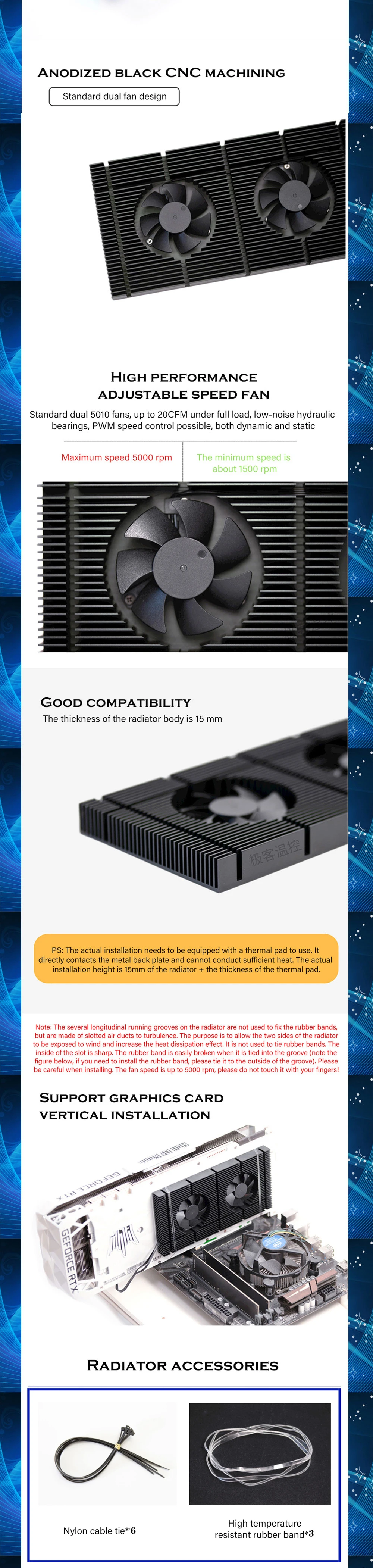 Comprar Radiador de placa trasera GPU para tarjeta de vídeo RTX3090 3080 3070, disipador de calor, Enfriador de memoria VGA VRAM, Kit de ventilador PWM de refrigeración de aluminio de 90x180x15mm