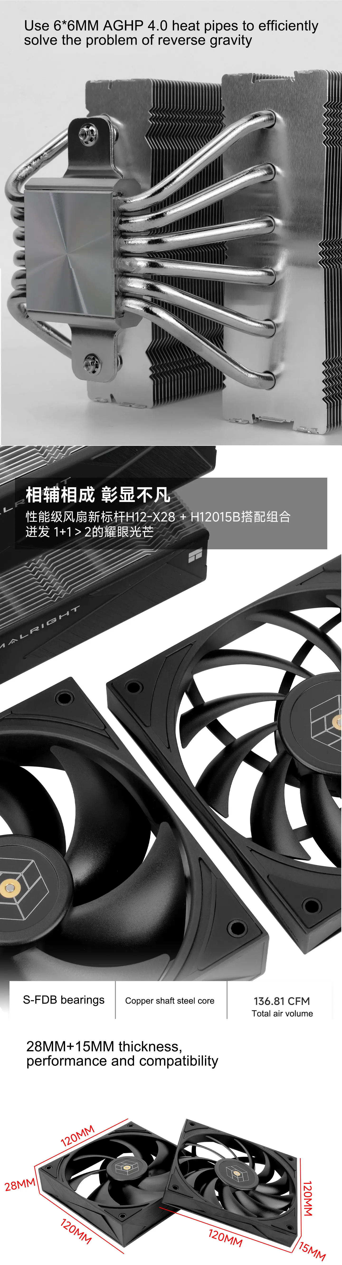 Comprar Radiador de refrigeración de aire para ordenador Thermalright Royal Knight 120, 6 tubos de calor y ventiladores duales, soporte para radiador de CPU LGA1700/115X/AM5/AM4