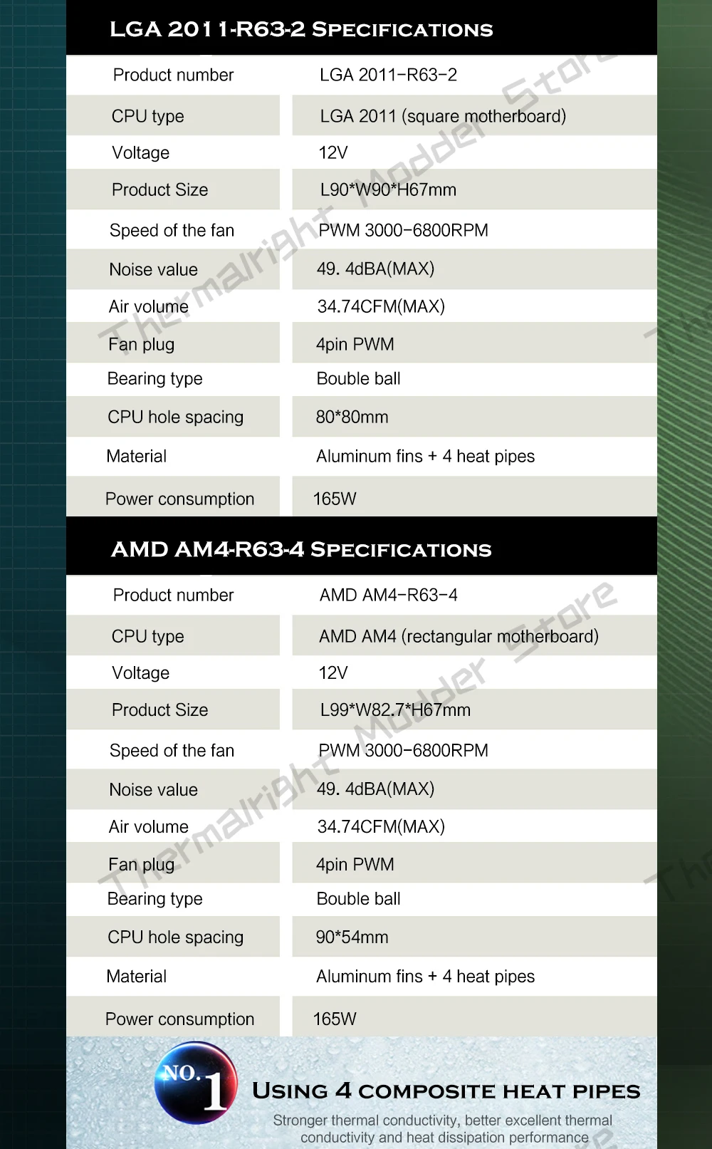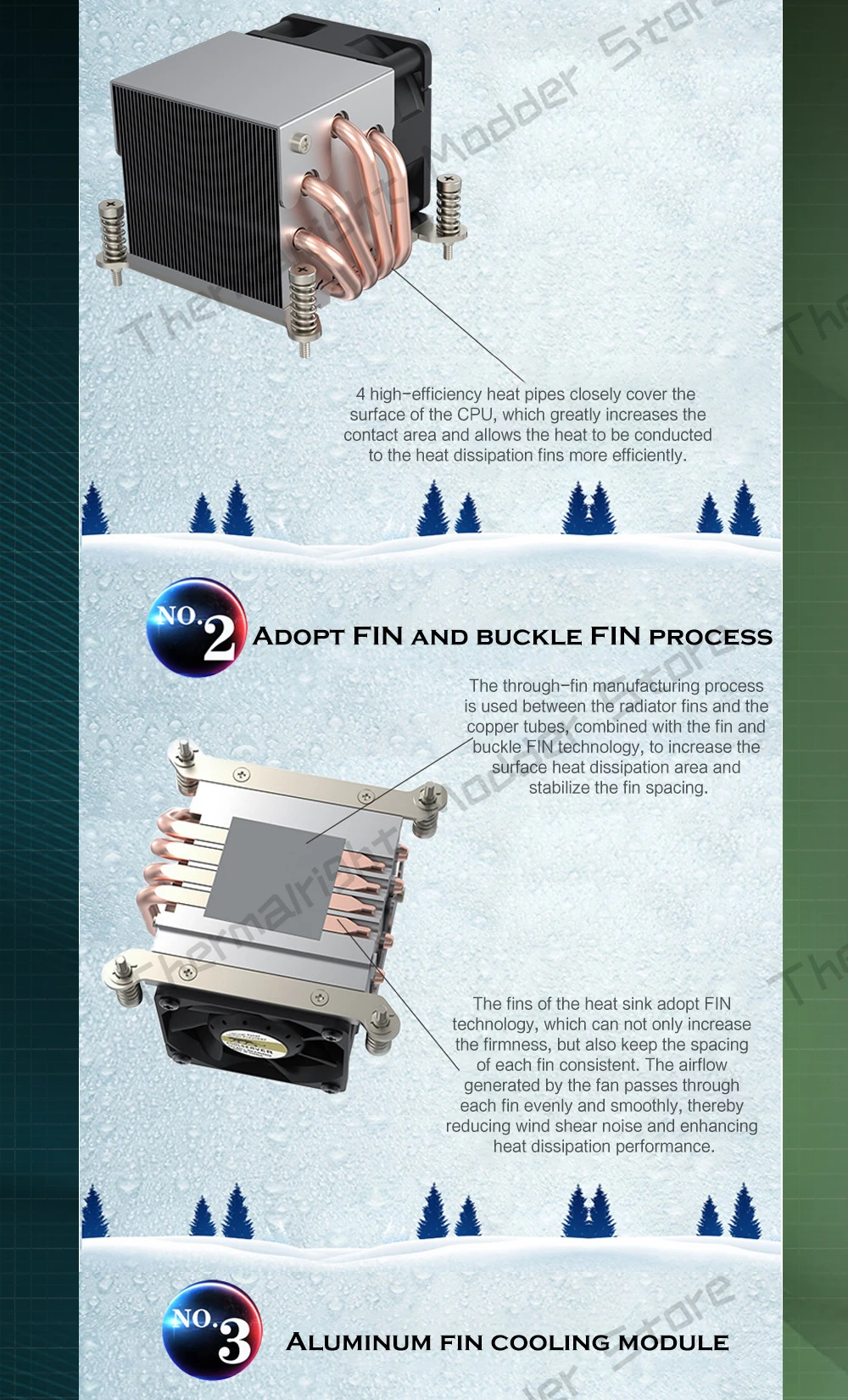 Comprar Radiador de refrigeración por agua para CPU, 4 tubos de calor, servidor Universal 2u, enfriador silencioso para LGA115X 2011 AMD/AM3 4 pines PWM 6800RPM