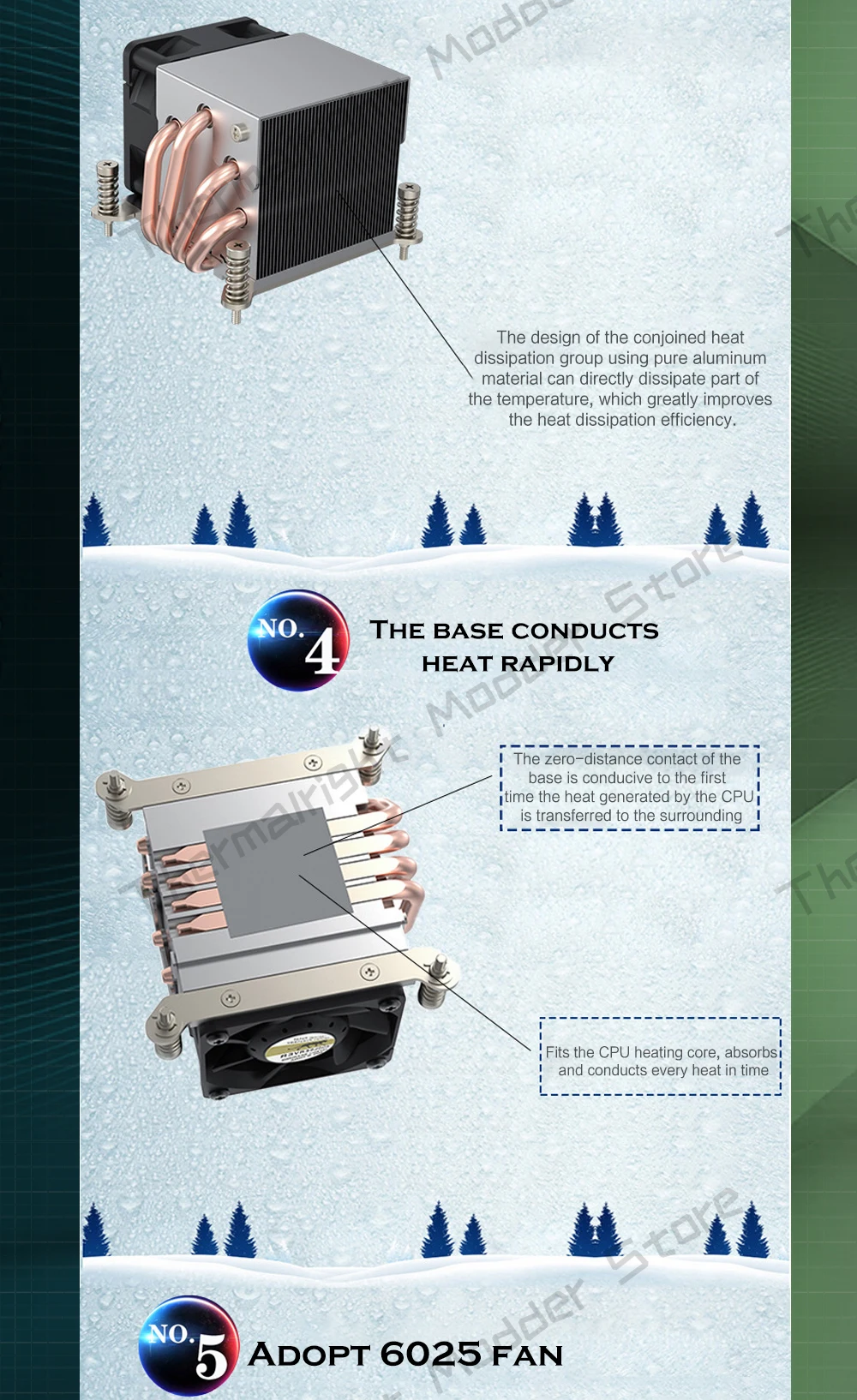 Radiador de refrigeración por agua para CPU, 4 tubos de calor, servidor Universal 2u, enfriador silencioso para LGA115X 2011 AMD/AM3 4 pines PWM 6800RPM
