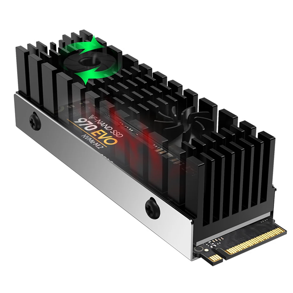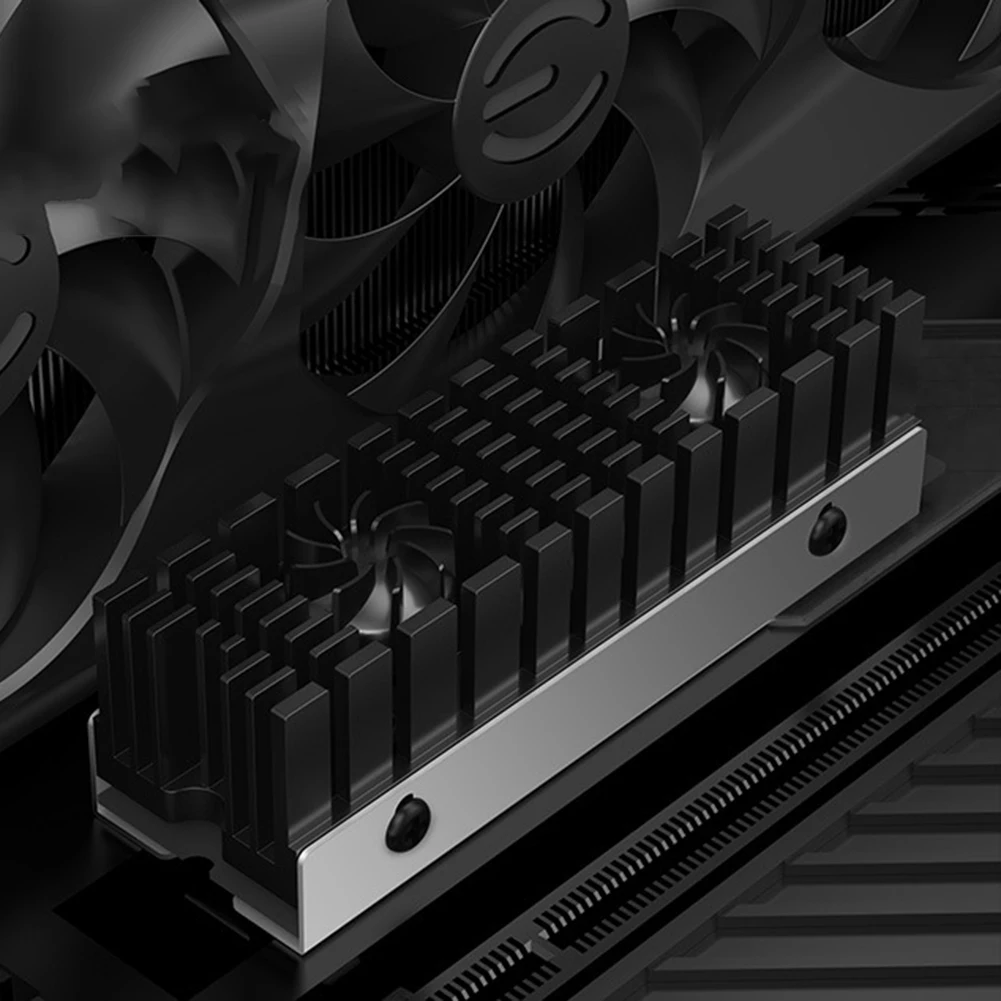 Característica:1. Radiador de torre de motor dual:Este radiador SSD adopta aletas de aleación de aluminio y está equipado con dos ventiladores de 13mm, con una velocidad de 7000-8000RPM, un volumen de aire máximo de 1,2 CFM y un nivel de ruido de 16,2 dBA. En términos de disipación de calor, los datos oficiales muestran que después de instalar el disipador de calor, las partículas de memoria flash SSD disminuyeron de 78 grados Celsius a 37 grados Celsius, y la temperatura del chip de control principal disminuyó de 94 grados Celsius a 42 grados Celsius.