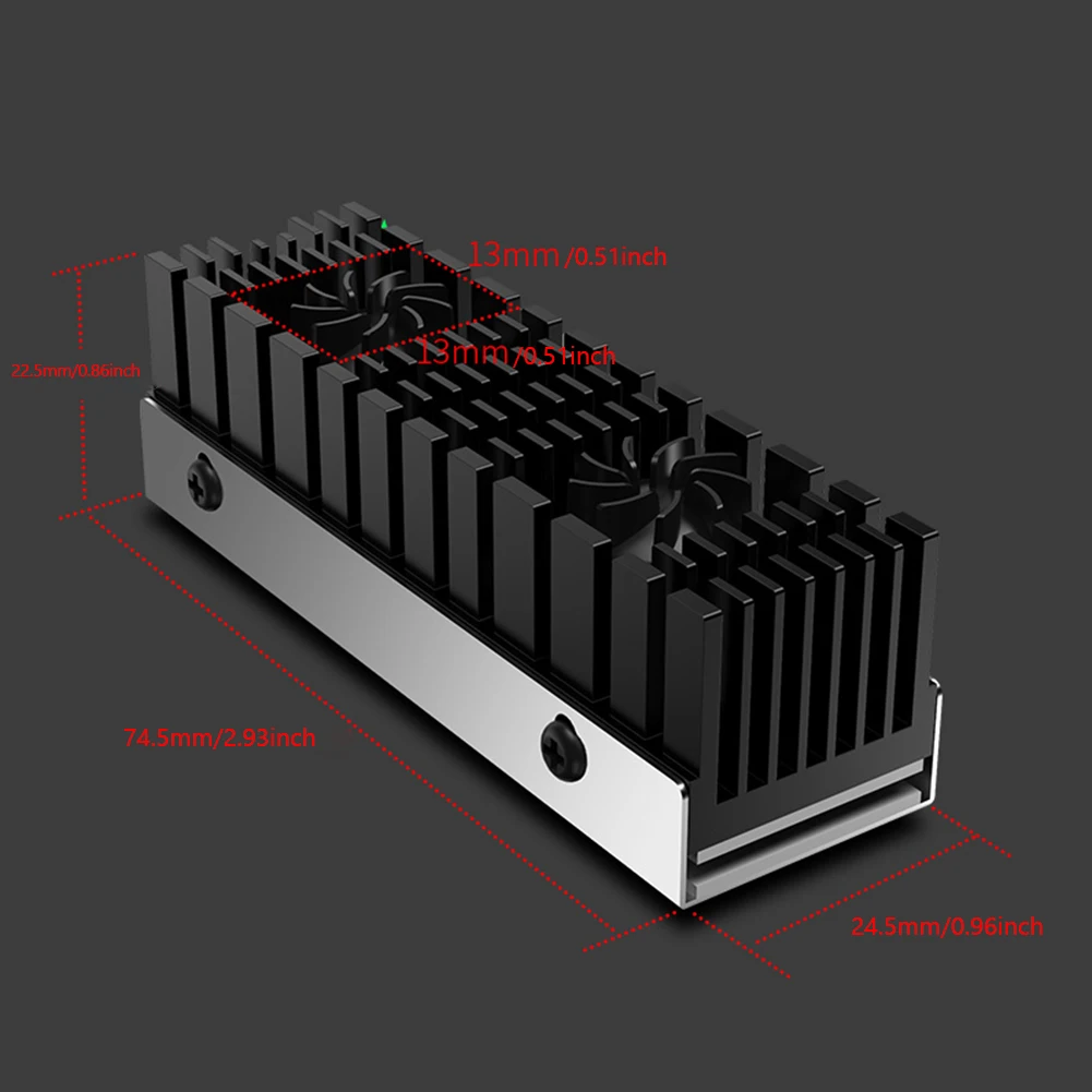 M.2 NVME Dual Engine Tower SSD Disipador de calor Aleación de aluminio 13MM Doble ventilador Enfriador de calor Radiador Interfaz SATA Pasta térmica para unidad de estado sólido 2280