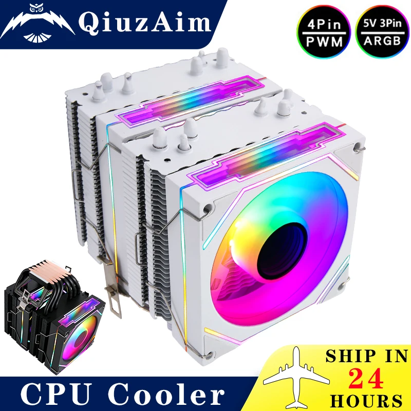 Comprar Radiador temático QiuzAim blanco/negro, torres gemelas, 6 tubos de calor, enfriador de CPU, ventilador Argb de 90mm, instalación LGA2011 2066x79x99 1200 115x AMD
