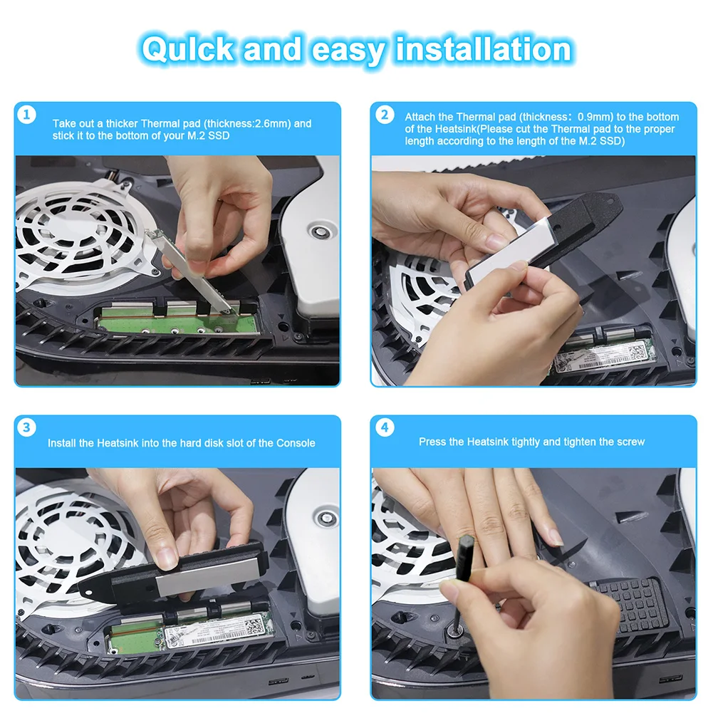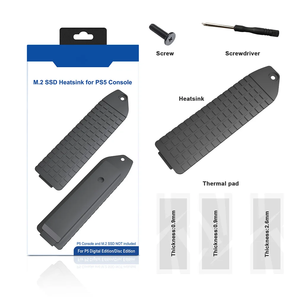 Feature: 1. Heat dissipation principle: The heat sink is a device used to dissipate heat from the heating electronic components in electrical appliances. For example, the CPU (central processing unit) in the computer needs to use a fairly large heat sink. The power tube, line tube and power amplifier tube in the TV need to use the heat sink. When in use, a layer of heat dissipation sponge is separated on the contact surface between the electronic components and the heat sink, so that the heat emitted by the components can be more effectively transmitted to the heat sink, and then distributed to the surrounding air through the heat sink. 2. Easy to install and operate: The assembly is precise and tight, easy to install, and will not damage the hard disk. 3. Durable material: Aluminum alloy greatly improves the corrosion resistance, hardness, wear resistance, insulation and heat resistance of SSD radiator, and extends the service life of the console. 4. Applicable model: M.2 SSD heat sink for PS5 digital version/CD version. 5. Note: If you have any product problems, you can contact us at any time, and we will reply to you as soon as possible and solve the problems for you. Specification: Origin: Mainland China Model Number: M2 SSD Heatsink Applicable model: For PS5 optical drive/digital Product weight: 100g Package size: 178x92x24mm/7.01x3.62x0.94in Installation method: 1. Take out a thick heat dissipation pad (2.6mm thick) and stick it to the bottom of M 2 SSD 2. Connect the heat dissipation pad (thickness: 0.9mm) to the bottom of the radiator (please cut the heat dissipation pad to an appropriate position according to the length of M 2 SSD) 3. Install the heat sink into the hard disk slot of the console 4. Firmly press down the radiator and tighten the screws Note: 3 X Insulation Pads 1 X Screw 1 X Screwdriver ![]() ![]() ![]() ![]() ![]() ![]() ![]() ![]() ![]() |