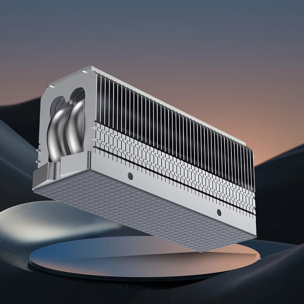 2. Tecnología de soldadura por reflujo:El radiador del disipador de calor equipado con dos tubos de calor de cobre AGHP de 6mm y que utiliza tecnología de soldadura por reflujo de doble tubo y doble enlace, mejorando significativamente la eficiencia de conducción de calor de los tubos de calor.