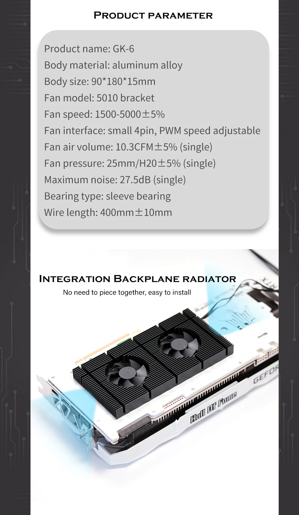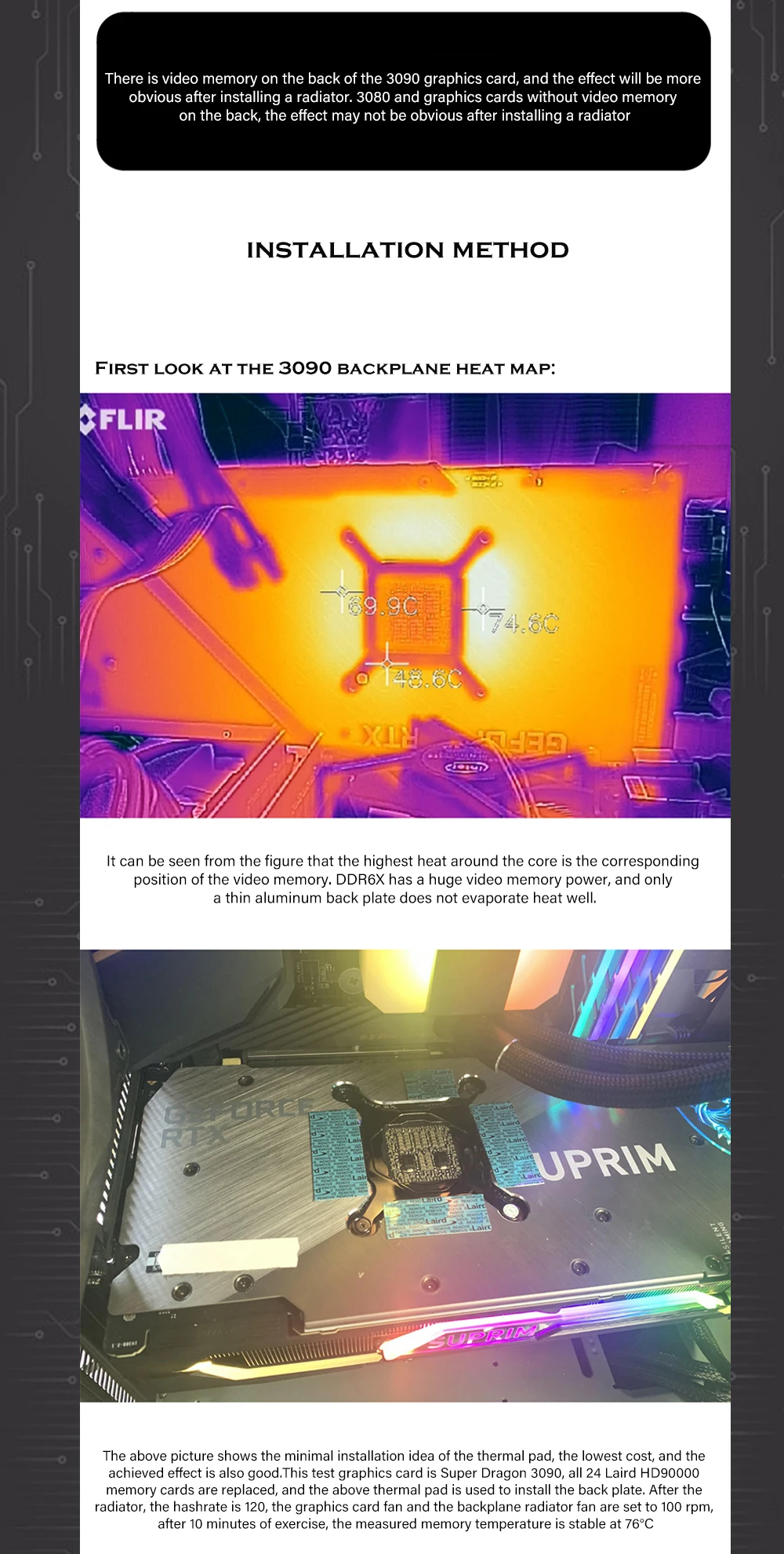 Comprar Radiador VRAM trasero GPU para RTX 3090 3080, disipador de memoria de placa trasera de aluminio + almohadilla superior Laird 700 + ventiladores PWM