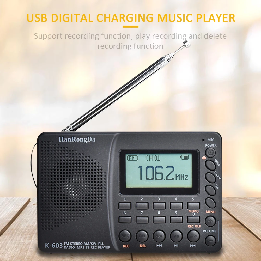 3.FM AM SW tiene una recepción estable en cada banda, diseño de botón intuitivo y selección de canal tipo teclado digital en modo radio, fácil de operar