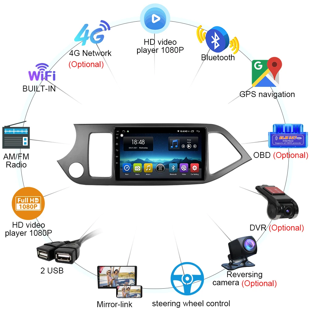 • Toda en uno para KIA PICANTO Morning 2011-2016 :Diseñado específicamente para KIA PICANTO Morning 2011-2016, asegurando un ajuste perfecto y una integración sin problemas.