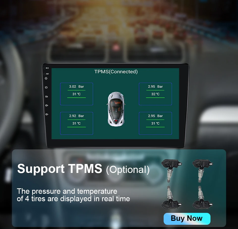 El detector inteligente de la presión del cuatro-neumático realiza la visualización en tiempo real de la temperatura. Cuando se excede el límite de presión o temperatura de los neumáticos, se activará una alarma inmediatamente (los sensores TPMS deben comprar)