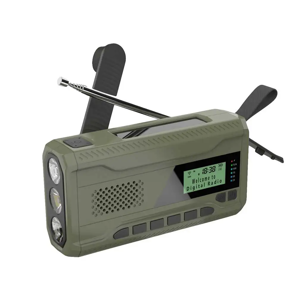 Pantalla LCD: Esta radio de manivela manual puede mostrar el nombre del canal de radio y la operación del botón es fácil de operar.