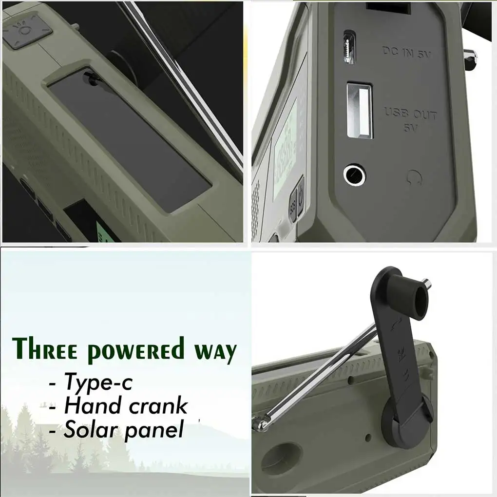 Uso DE EMERGENCIA: Esta radio funciona con energía solar y también tiene un diseño de manivela manual, por lo que no se quedará sin energía.