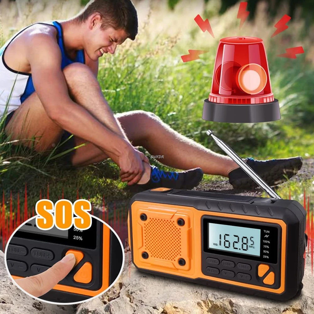 Comprar Radio FM AM portátil, Radio de emergencia, Radio de manivela, linterna recargable, alarma SOS, altavoz tipo banco de energía, envío directo