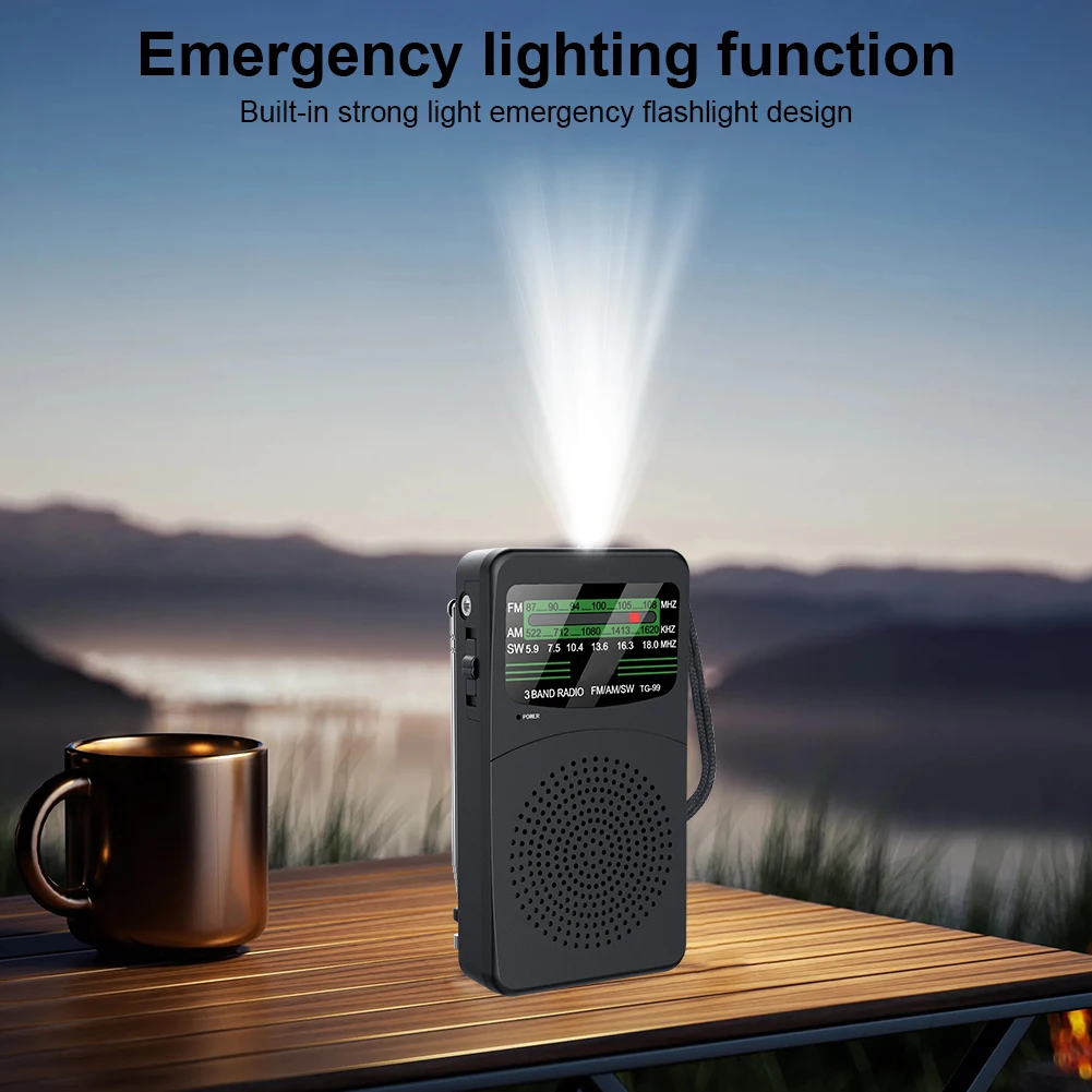 Radio FM AM SW con linterna LED Radio con batería y conector para auriculares Radio portátil para acampar al aire libre personas mayores caminando