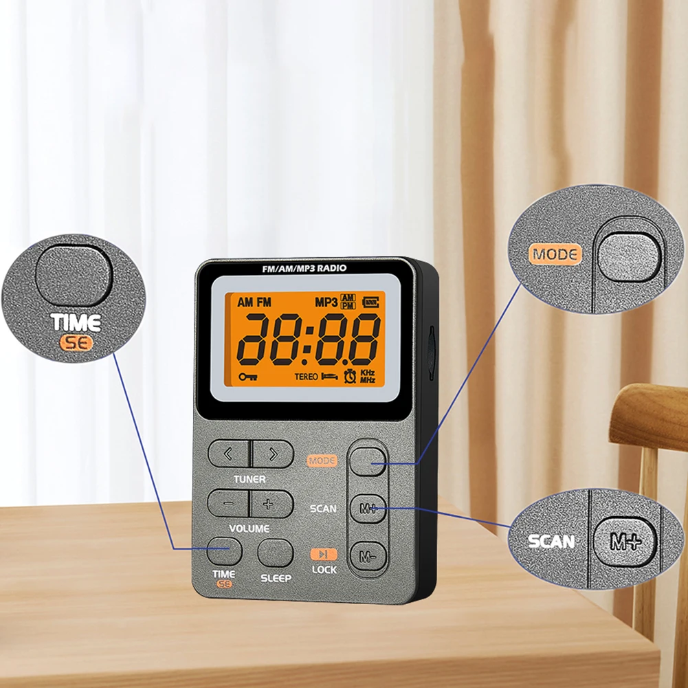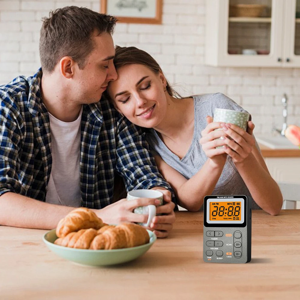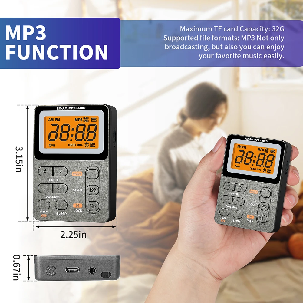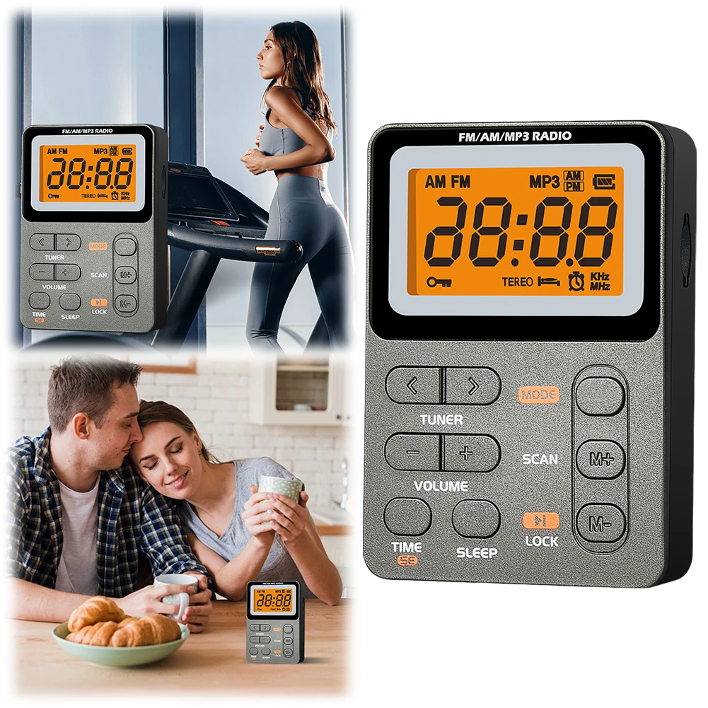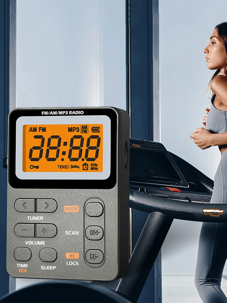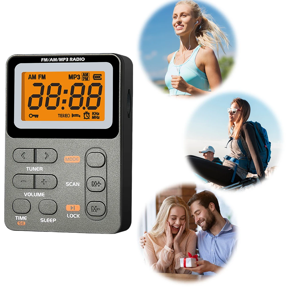 Radio portátil AM FM Radio de bolsillo recargable con auricular estéreo MP3 Pantalla LCD Radio digital para gimnasio trotar caminar Camping