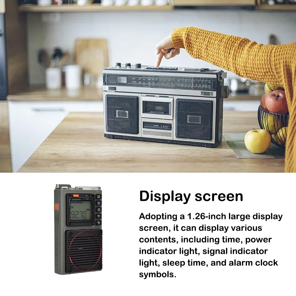 Fuerte sensibilidad: Recepción de FM, ondas medias, onda corta, frecuencia muy alta y transmisiones de radio de banda completa en bandas meteorológicas de América del Norte. Tiene una fuerte sensibilidad de recepción.