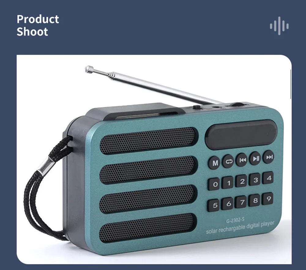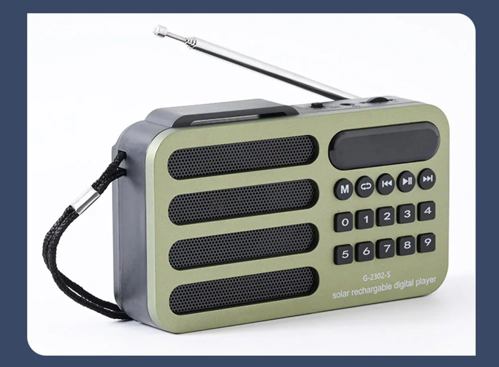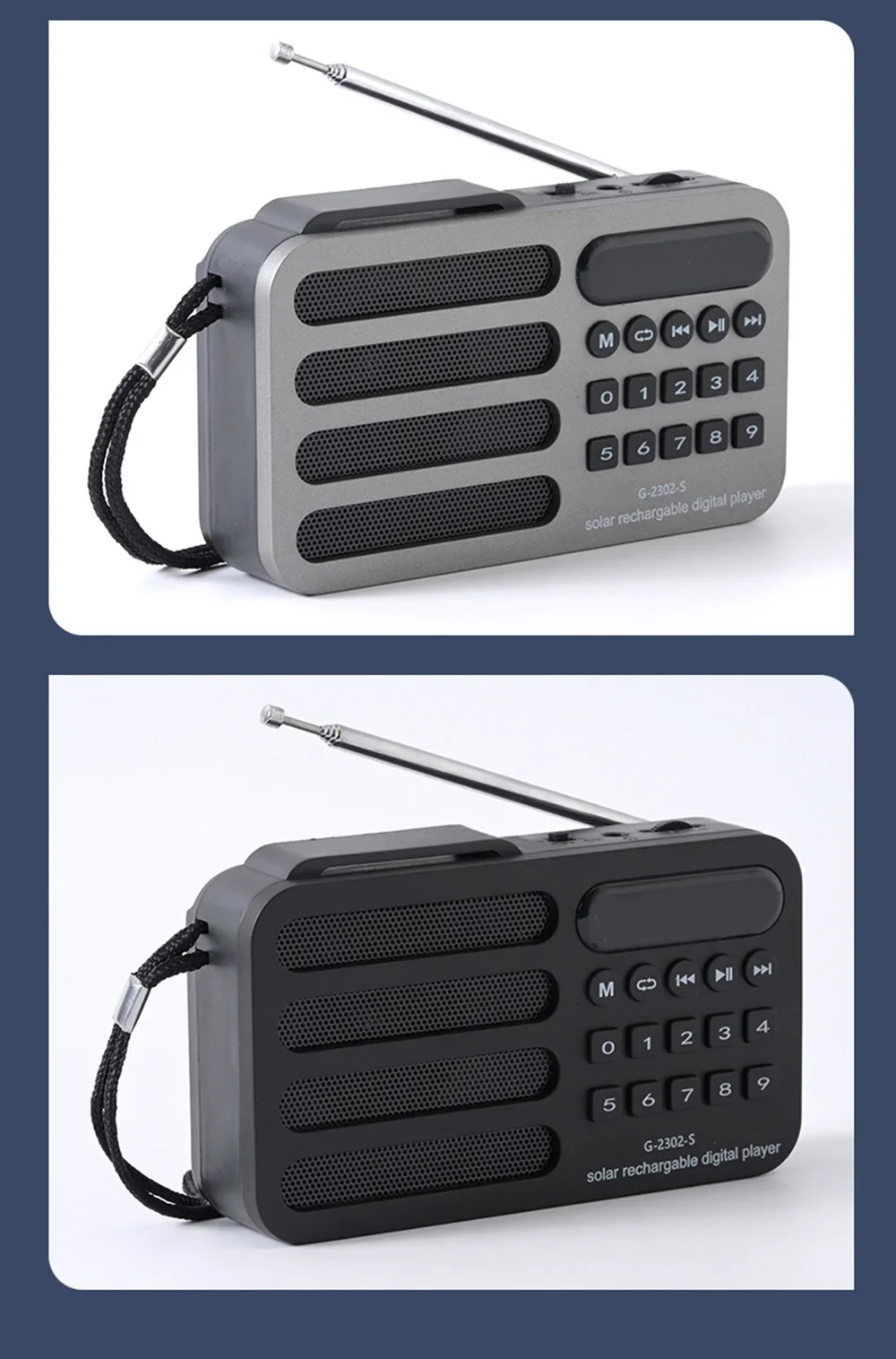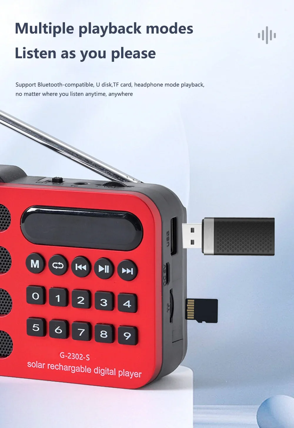 Radio portátil FM MP3 USB Bluetooth altavoz inalámbrico compatible con carga Solar tarjeta TF reproductor de música U-disk con receptor de Radio FM