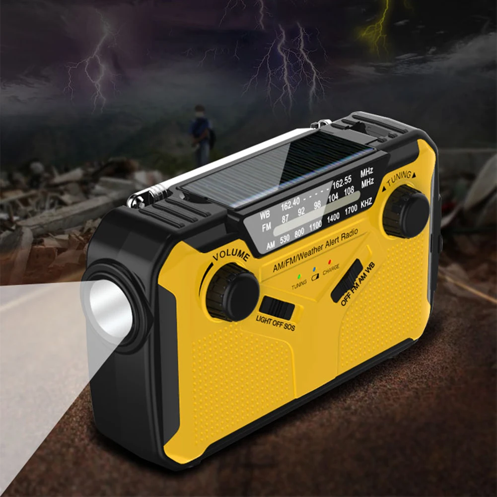 Radio de emergencia con linterna LED Power Bank SOS Radio de manivela de mano Radio Meteorológica de emergencia para emergencia Camping Storm Survival