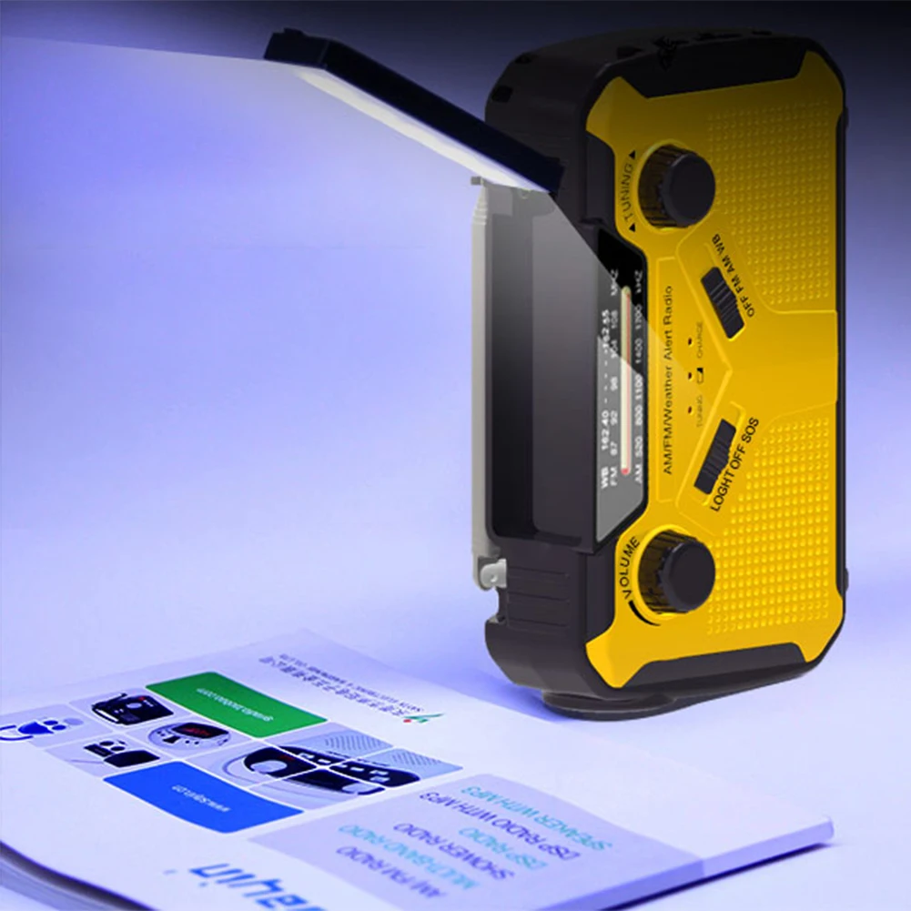 1. Iluminación brillante y fiable:Equipada con una potente linterna LED y una lámpara de lectura, esta radio de emergencia garantiza una visibilidad clara en condiciones de oscuridad. Ofrece un soporte de iluminación esencial para camping, senderismo o situaciones de emergencia.