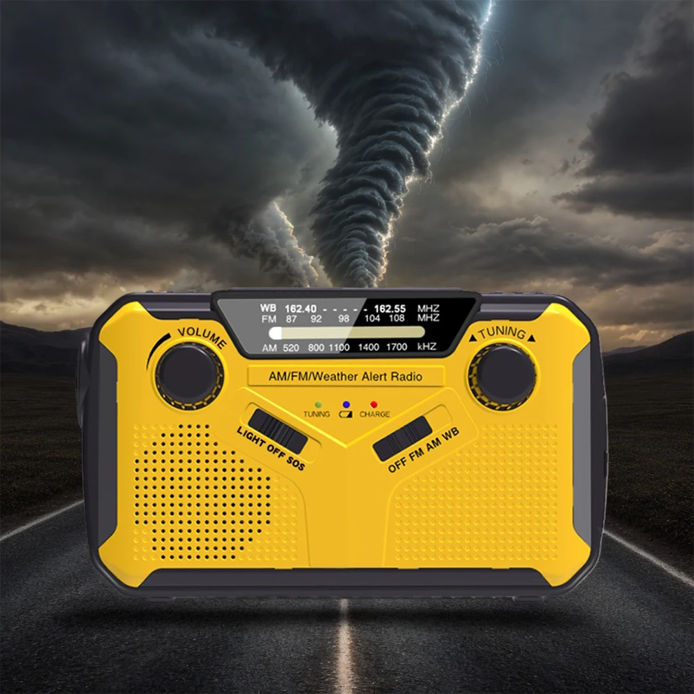 3. Alertas de emergencia rápidas:La función SOS de esta radio meteorológica de emergencia permite una rápida señalización de socorro durante aventuras al aire libre o desastres naturales. Una simple pulsación de botón activa un sonido de alarma y luces intermitentes para alertar a las personas cercanas.
