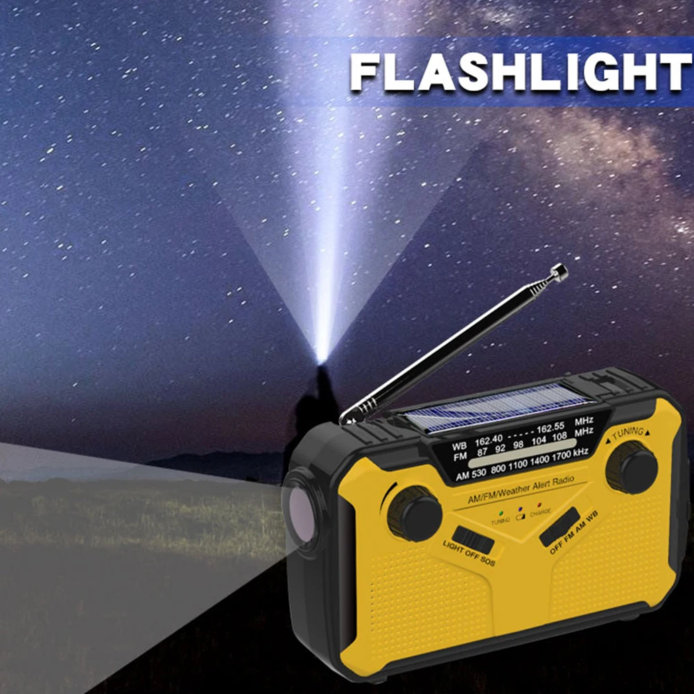 Radio de emergencia con linterna LED Power Bank SOS Radio de manivela de mano Radio Meteorológica de emergencia para emergencia Camping Storm Survival