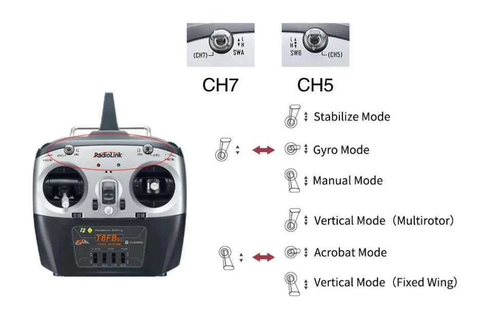 【Desde principiante hasta maestro】--Los pilotos pueden practicar cualquiera de los cinco modos de vuelo (Vertical/Estabilizar/Gyro/Acro/Manual) como desee.