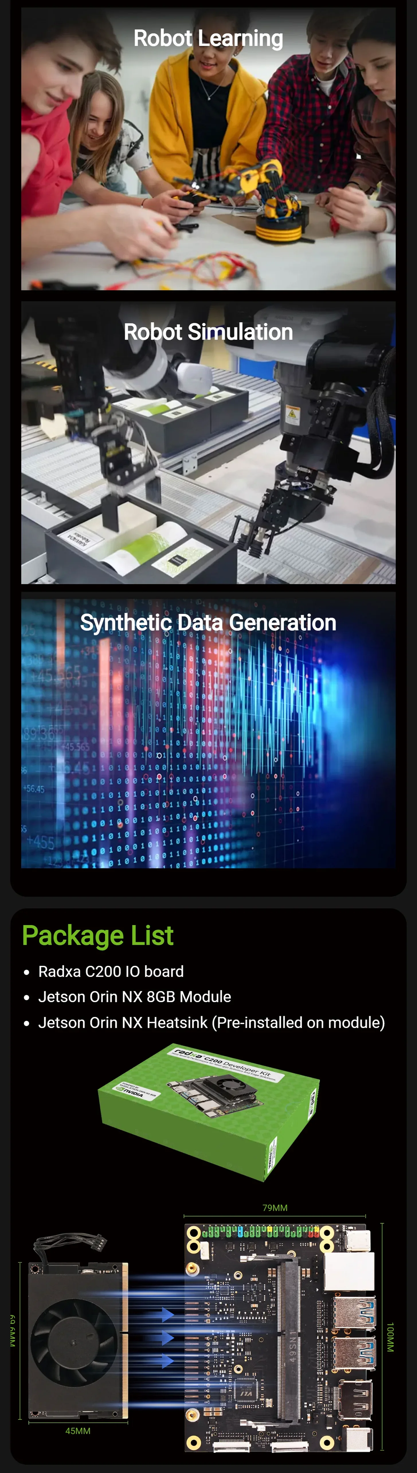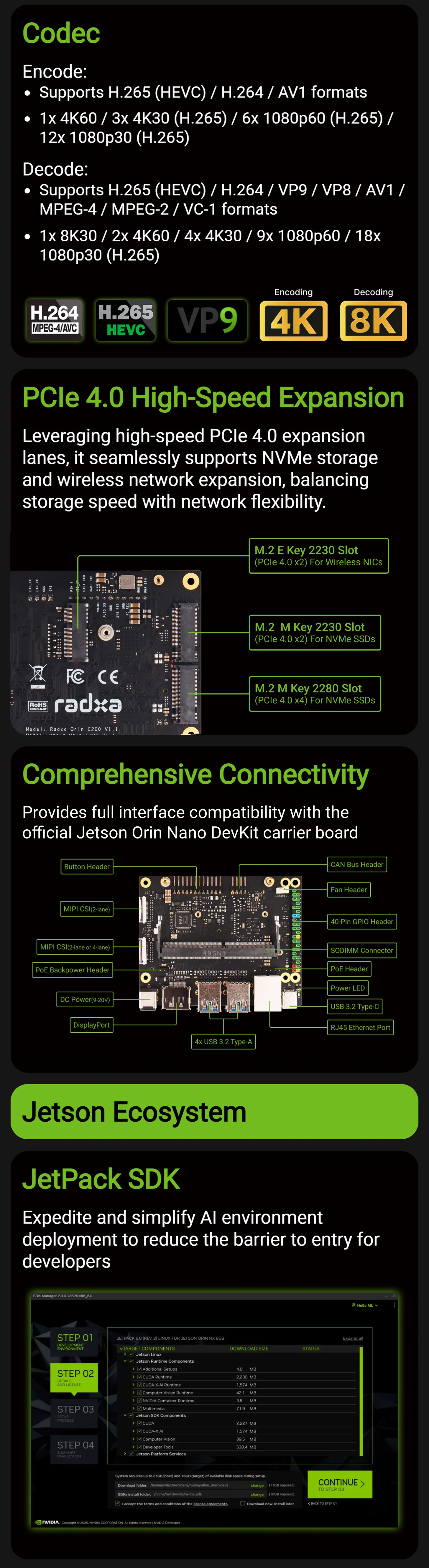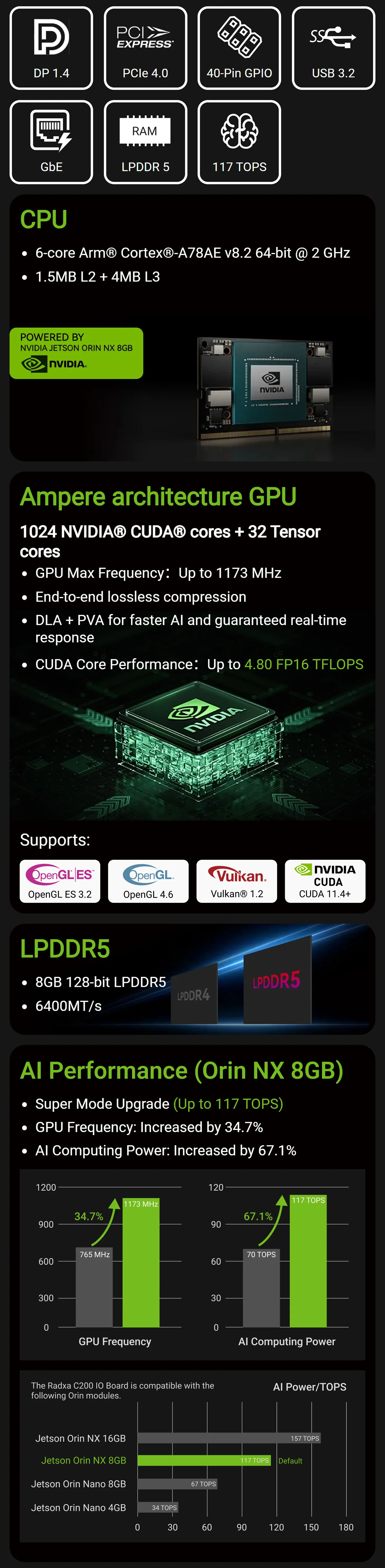 Kit de desarrollo Radxa C200 Orin/Jetson Orin NX 8GB/Super Modo 117 TOPS/Edge AI