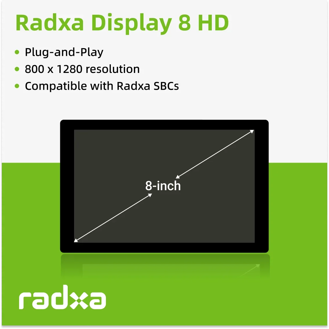 Pantalla de Radxa 8 HD, pantalla táctil, resolución de 800 x 1280 compatible con SBC de Radxa, Plug-and-Play