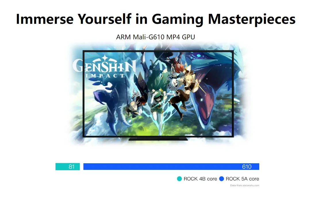 Armar Mali™ GPU G610MC4 compatible con OpenGL® ES1.1, ES2.0 y ES3.2, OpenCL® 1.1, 1,2 y 2.2, Vúl® 1.1 y 1.2, módulo de aceleración de imagen 2D integrado de alto rendimiento