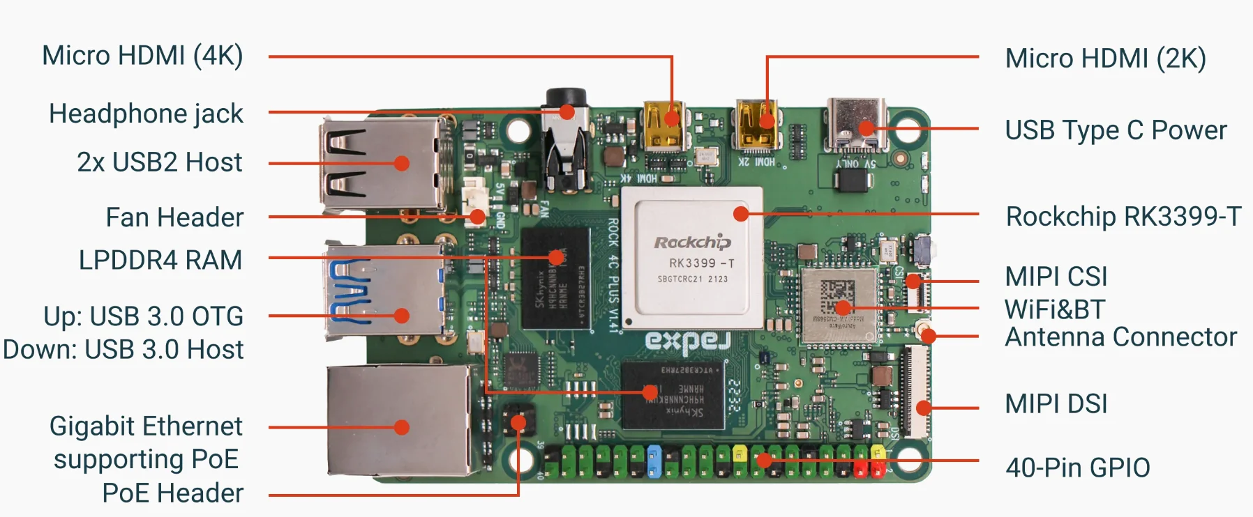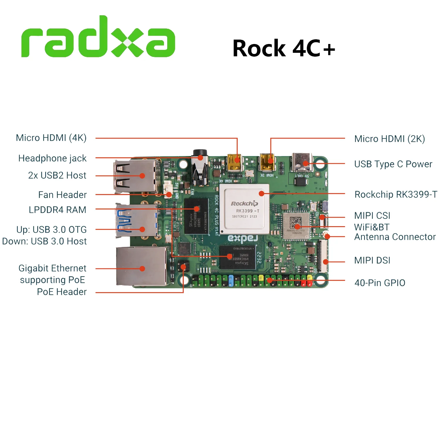 Comprar RADXA ROCK PI 4C Plus 4 C + V1.41 versión RK3399-T pantalla Dual 4K de seis núcleos A72 A53, placa de desarrollo compatible con Raspberry pi