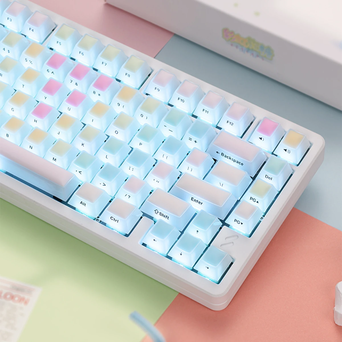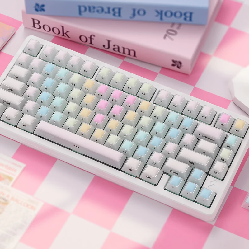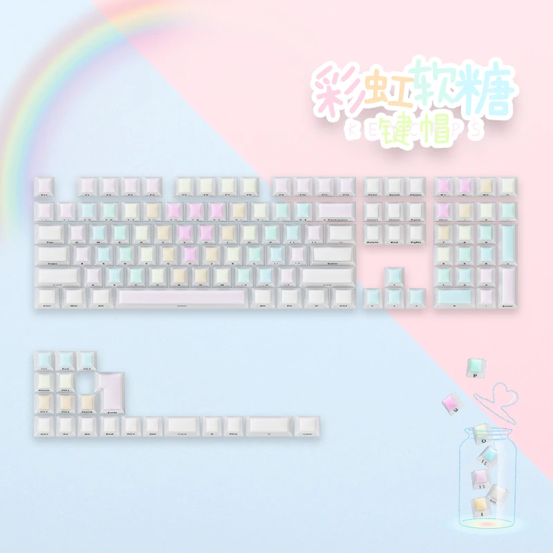 Comprar Rainbow Fudge Candy Theme 128 teclas Perfil de cereza Material de PC translúcido Lado grabado Niebla Transparente Keycap para Wooting