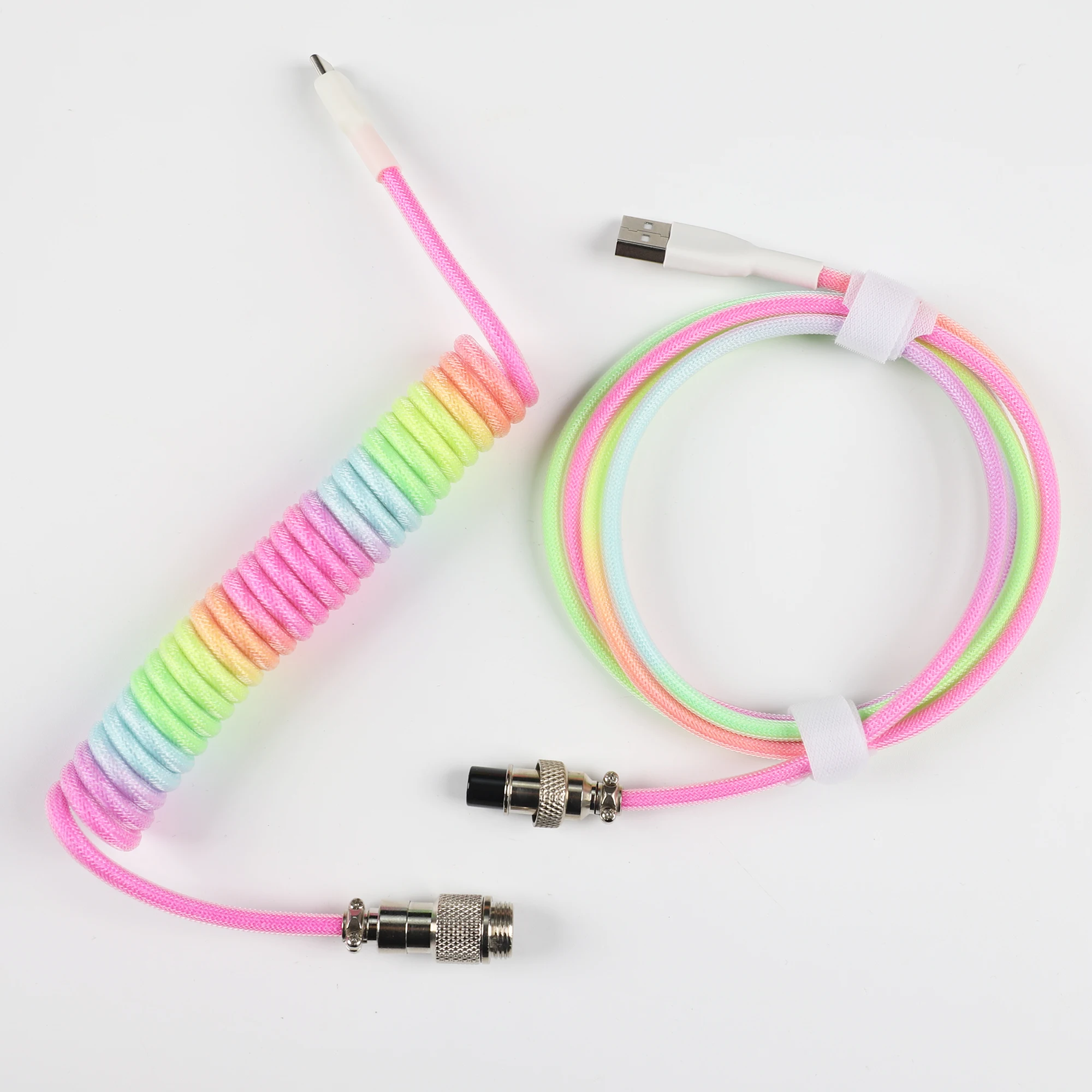 Comprar Rainbow Purple White Green Braided Type A to C Aviator Data Line 150cm Coiled Spring Cable For Keyboard Melody 96 KBD75
