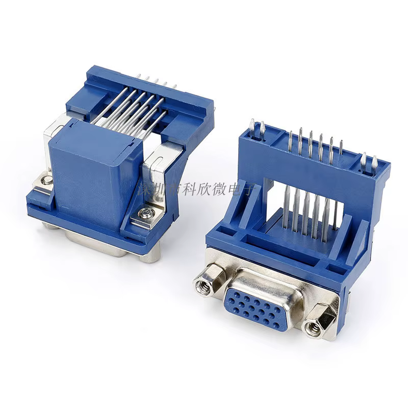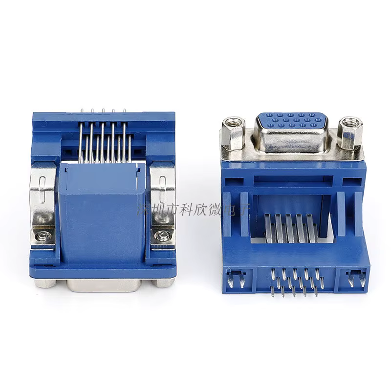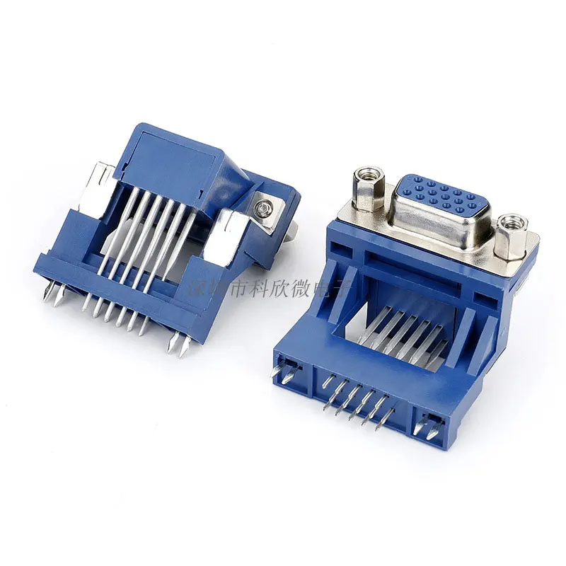 Raise DR/DB15-toma VGA hembra 15P, triple fila, puerto serie Azul elevado, pies doblados de 90 grados