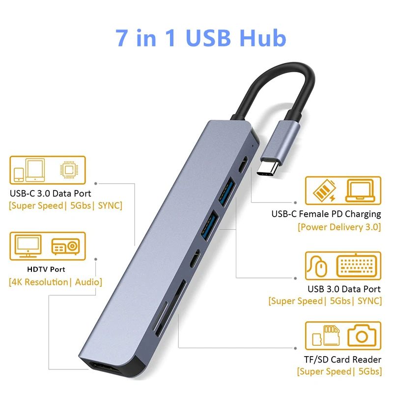 Modelo 2: Tipo-C a HDTV/USB 3,0/USB 2,0/USB C/SD/TF;