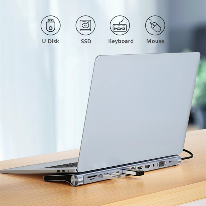 Modelo 4: Tipo-C a HDTV/VGA/RJ45/SD/TF/Tipo-C/USB 3,0/USB 2,0*3/Aux;