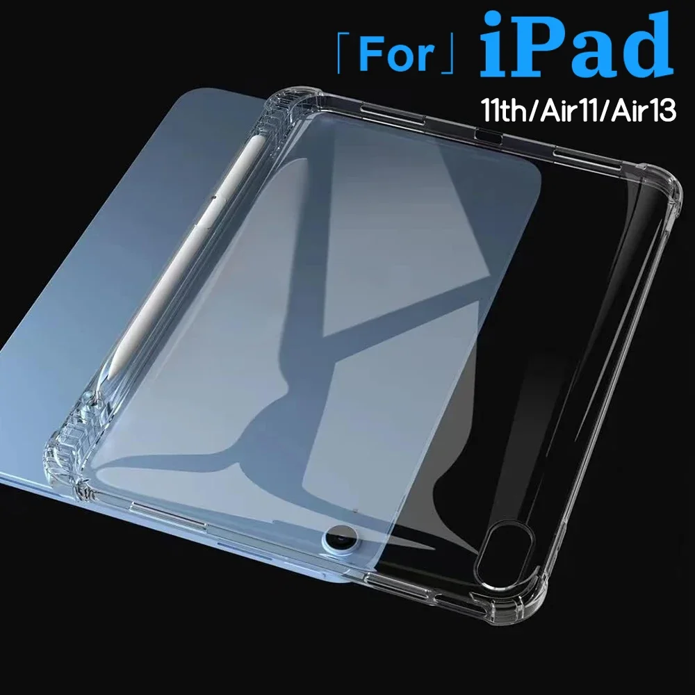 Con ranura para lápiz, funda transparente para tableta para iPad 11. a generación A16 2025, funda suave de TPU a prueba de golpes para bolsas de aire para iPad Air 11/Air 13 M3 M2
