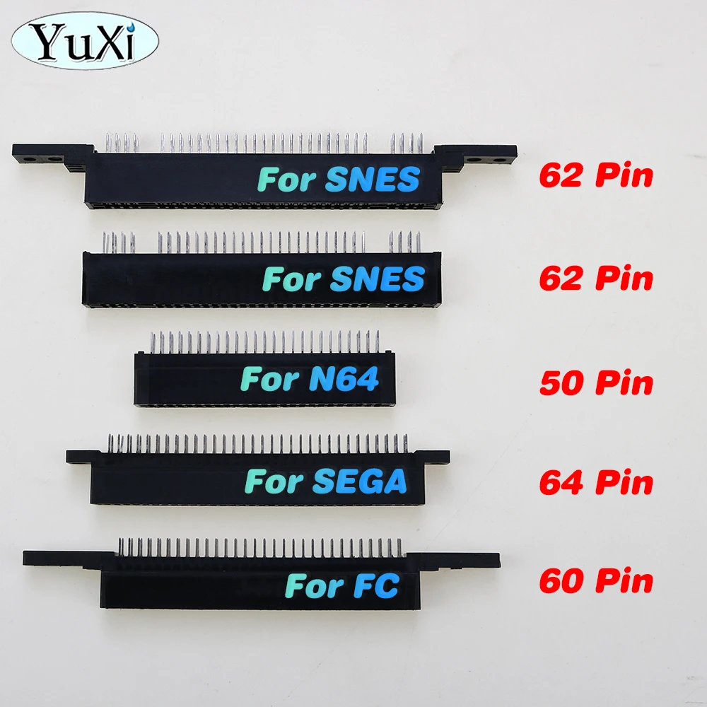 Comprar Ranura de tarjeta para consola SNES SEGA Famicom FC N64, adaptador de conector de 64 Pines, 62 Pines, 60 Pines, 50 pines, pieza de reparación de ranura de cartucho de juego, 1 pieza