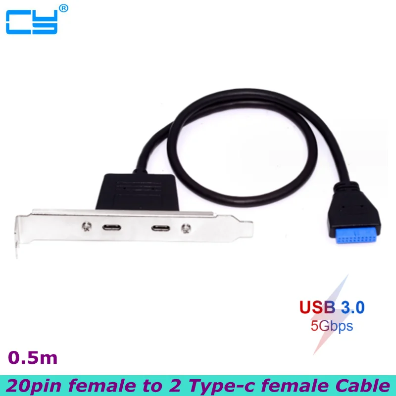 Comprar Ranura para tarjeta PCI frontal de 0,5 m, puerto de expansión USB 3,1, 20 pines hembra a doble TYPE-C, Cable de datos hembra con bisel en el chasis del ordenador