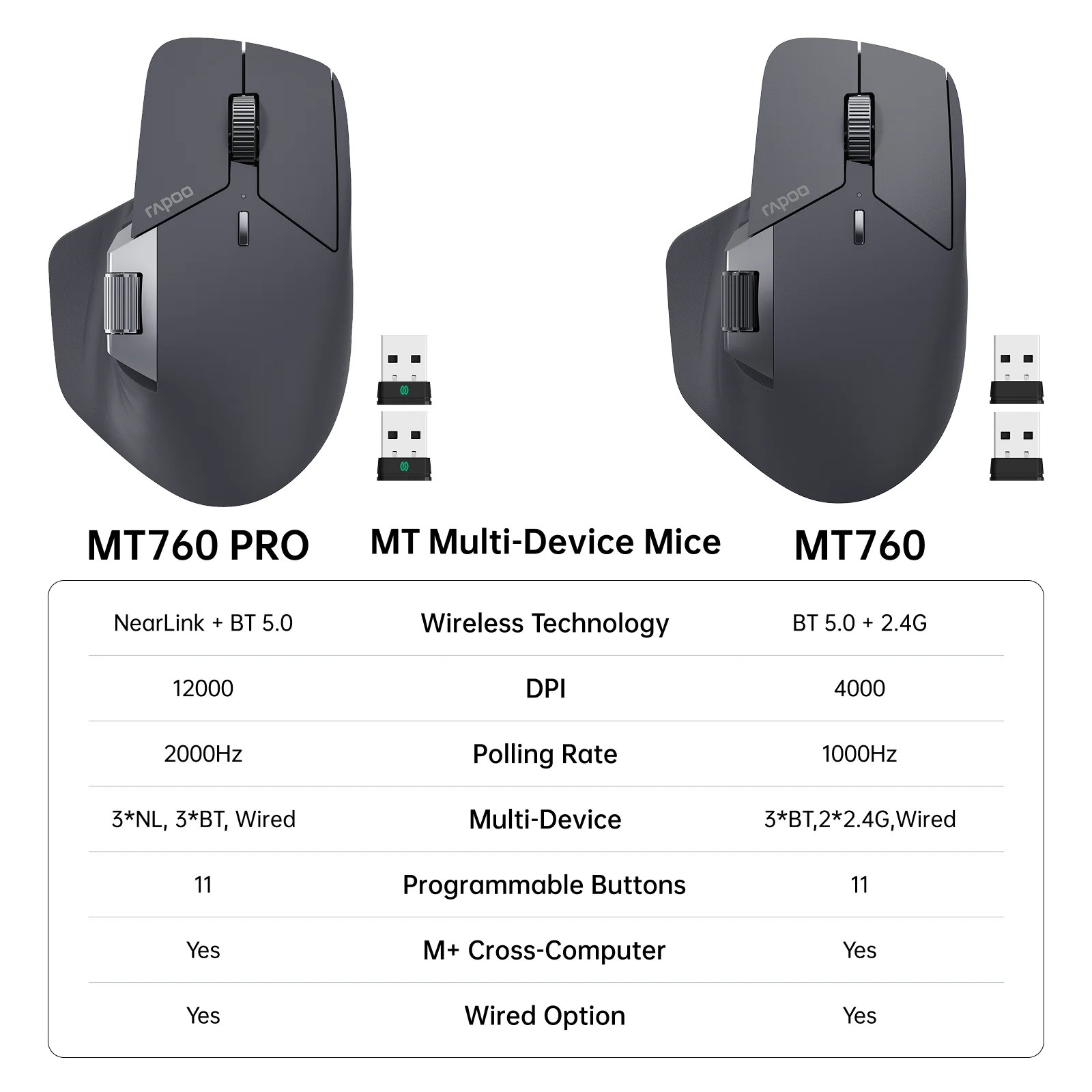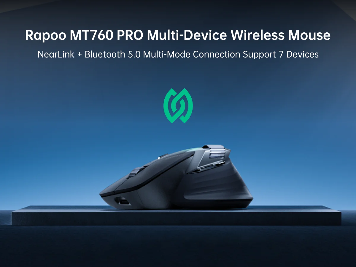 Ratón inalámbrico Rapoo MT760 PRO, dispositivo múltiple NearLink + Bluetooth 5.0, 12K DPI, 2K Polling, Ergo para trabajar y jugar, 11 botones programables, memoria integrada, clics silenciosos, USB-C, duración de la batería de 120 días