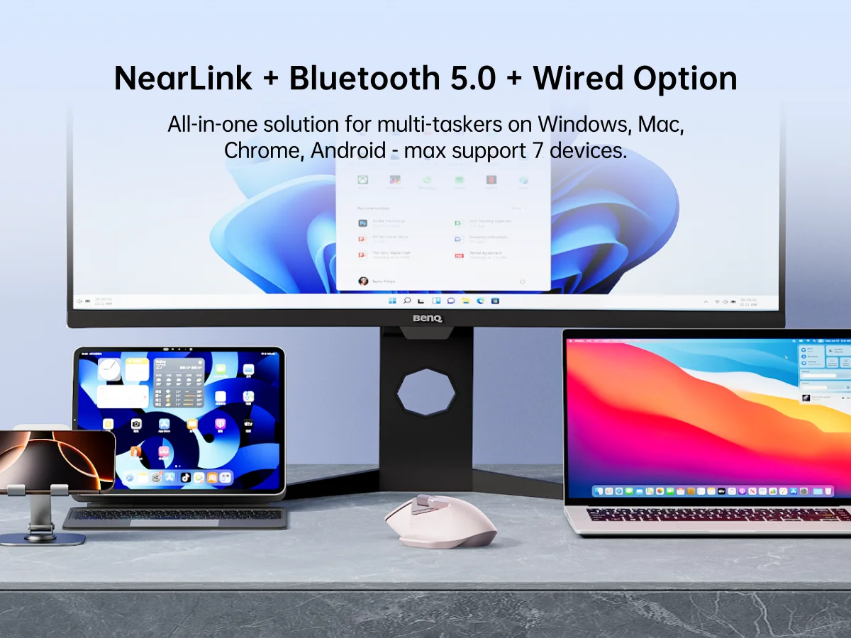Multidispositivo y Multi-OS: Conecte hasta 7 dispositivos: 2 * USB NearLink, 1 * Wireless NearLink, 3 * Bluetooth, 1 * Opción cableada.Solución todo en uno para múltiples tareas en Windows, Mac, Linux, Chrome, sistema operativo Android de sobremesa, computadora portátil, tableta y teléfono.